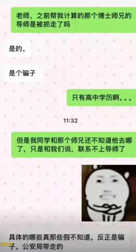 学生还不知道老师去哪了,联系不上导师了。这些博士生也真的是倒霉。被高中生教了两年。因为老师教课混乱,被某些学生质疑之后,上网去查他的证书论文,全都查不到出处。