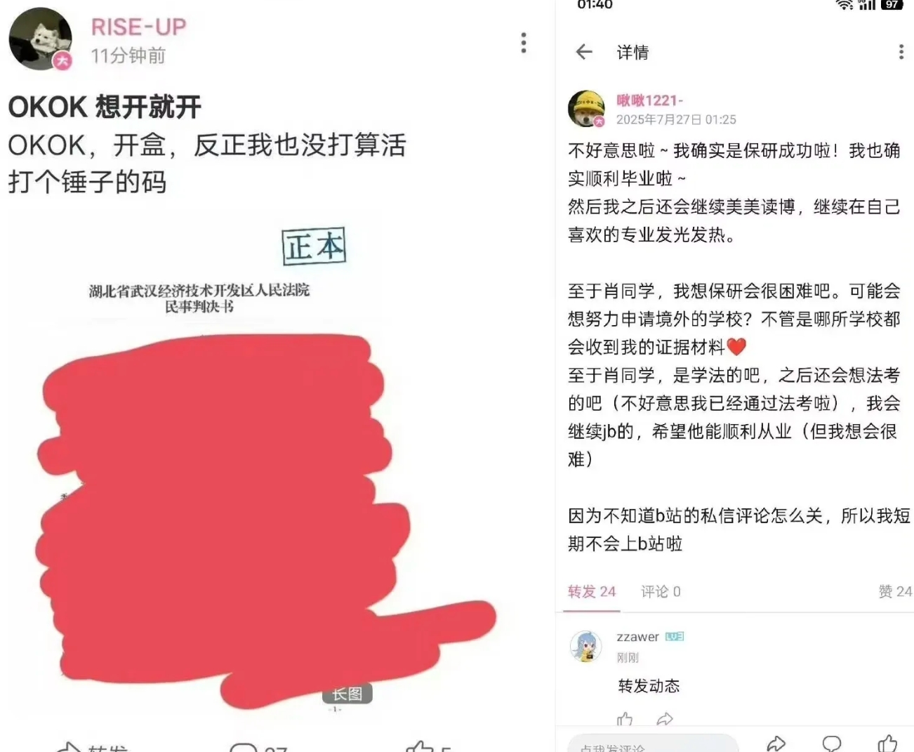 在持续近两年的舆论与司法博弈中,受害人肖同学不仅名誉受损,也患上了精神疾病,家中长辈也因此郁郁而终,可谓家破人亡。而诬告者杨某某,则学业步步高升,职业规划发展如履平川。法院宣判后,肖同学仅仅获得了正名,但依旧背负着学校的“处分”,学业被毁不说,还承受着精神折磨与失去亲人的痛苦,而加害人杨某某不仅没有进行任何悔过道歉于经济赔偿,还顺利考证、顺利保研,即将走向更为灿烂的人生。