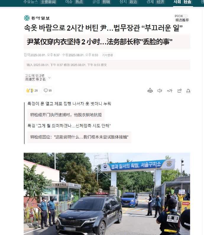 韩国前总统不嫌丢人,为了拒捕竟脱得只剩内衣,躺地上打滚 据韩媒报道,调查尹锡悦老婆的特检组人员8月1日来到首尔拘留所,要把尹锡悦给强制带走,韩方表示尹锡悦在金建希案中一直不配合传唤,这才下了逮捕令,不过人已经在牢里了还要再逮捕一次,难道不能直接调查吗?这一操作就连韩国民众也懵了,不知道是啥意思。尹锡悦拒捕细节曝光