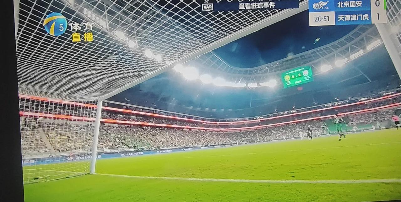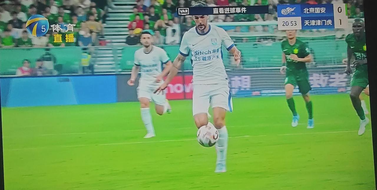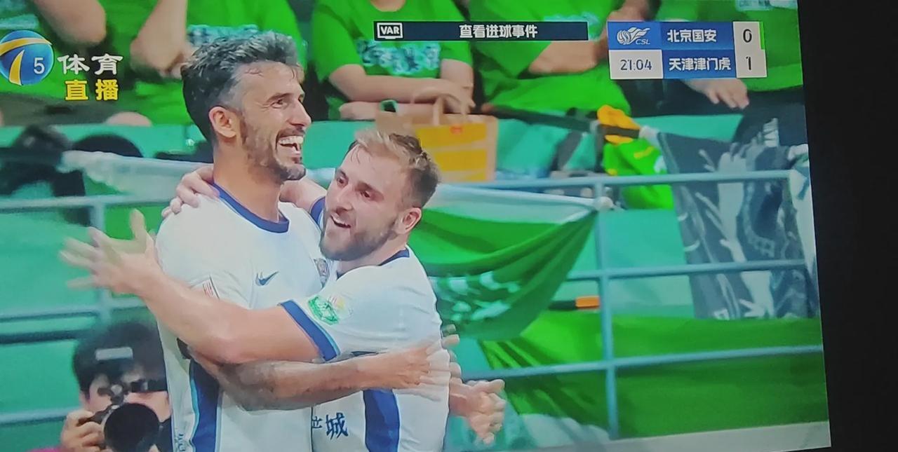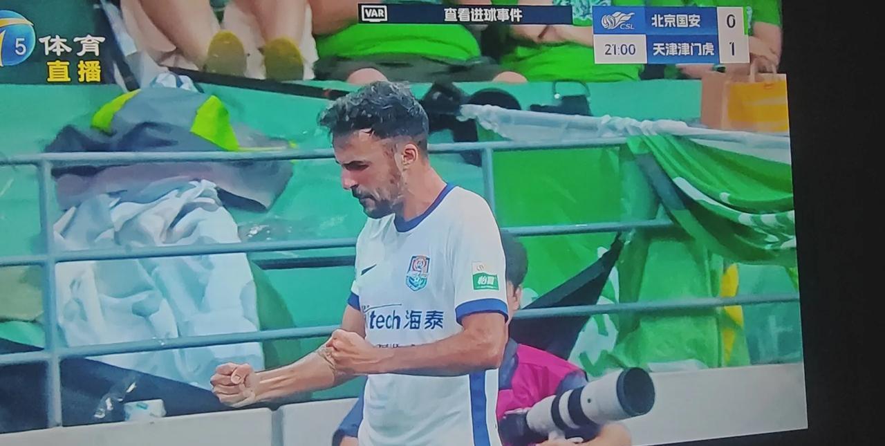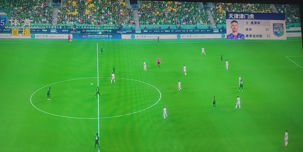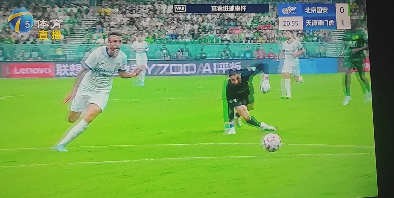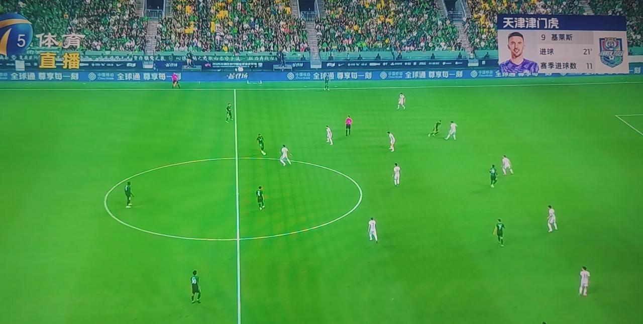 天津津门虎1-0暂时领先北京国安。基来斯打送五轮不进球的进球荒。基来斯反越位挑球