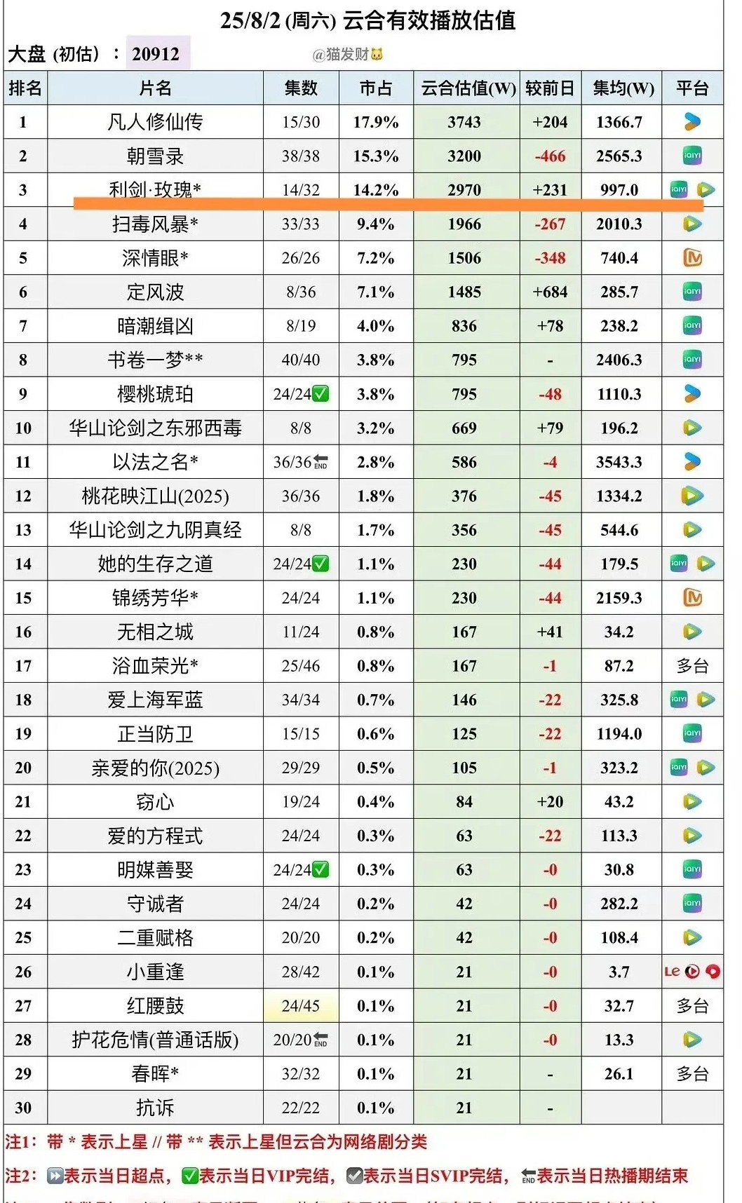 《利剑玫瑰》双平台裸播了 感觉网播成绩也还行啊,招商咋这么差,这剧有年轻观