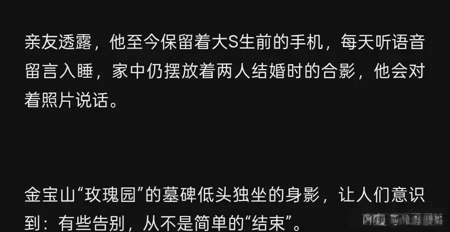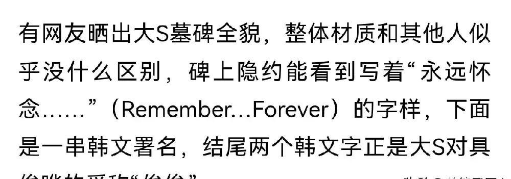 #头号创作者激励计划#玥儿的话,狠狠打脸S妈! 小杨阿姨透露,玥儿也很想看妈妈,一句话让人泪崩!好狠心的外婆,不让孩子送葬,不让孩子祭拜妈妈,大S墓碑刻文也没有孩子名字,而是具俊晔的表白词“永远怀念……”最后的署名还是大S对具俊晔的昵称“俊俊” 大S的遗物孩子们什么也没得到,大S的手机也成了具俊晔的表演的工具,因为他要听着大S的声音入睡,要翻看和大S的合照。 S家那么爱具俊晔,具俊晔给他们带来了啥?