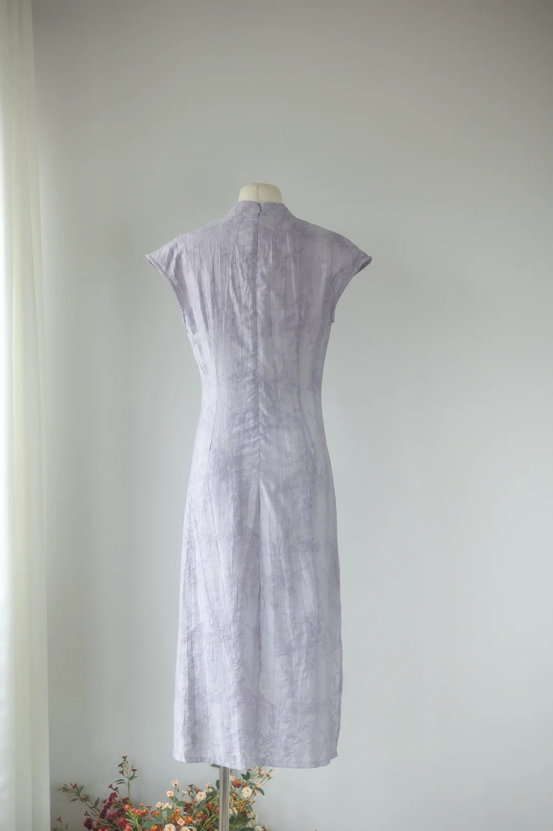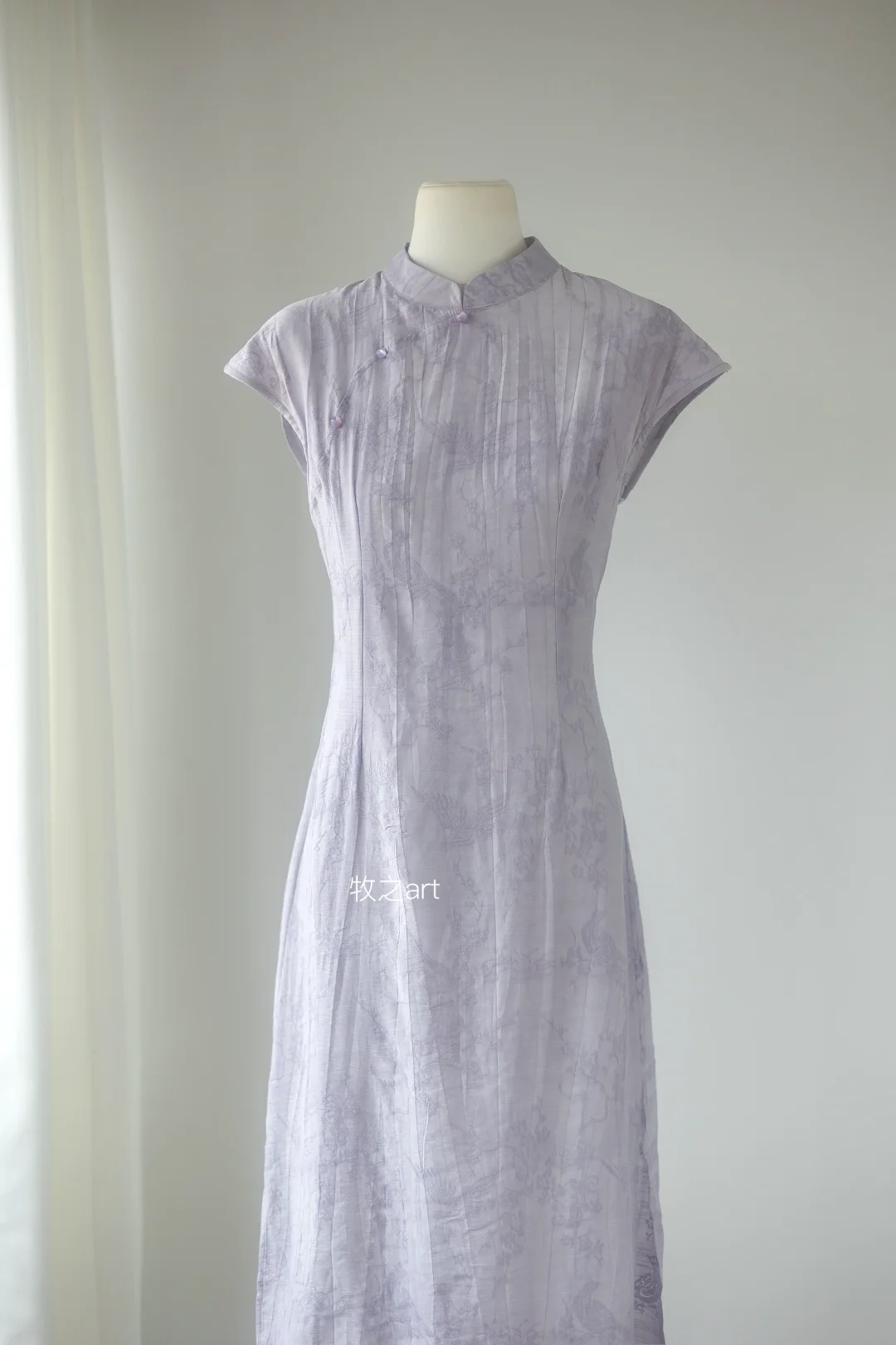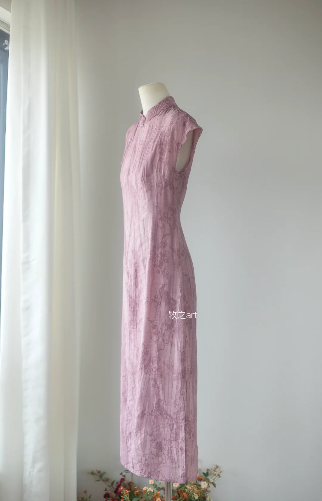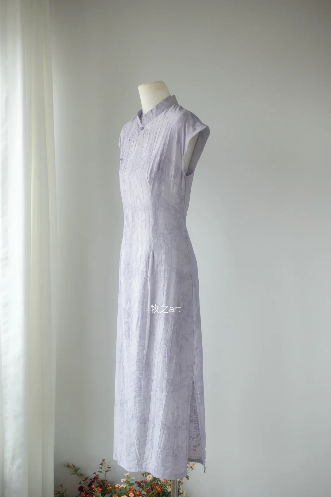 面料是提花纹路,做了炒色工艺,不规则晕染 是很特别又耐看型 矮立领搭配手工盘扣,显得脖子好修长 小盖袖蛮藏肉的,比起无袖款更修饰斜方肌和副乳 整体版型是偏修身,但是又有余量 刚刚好能修饰我们腰腹线条,显瘦 后背拉链,穿脱起来方便 -