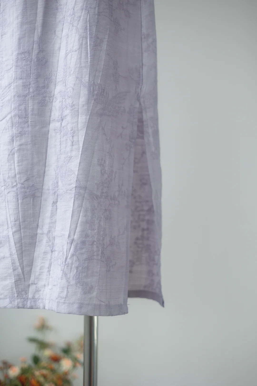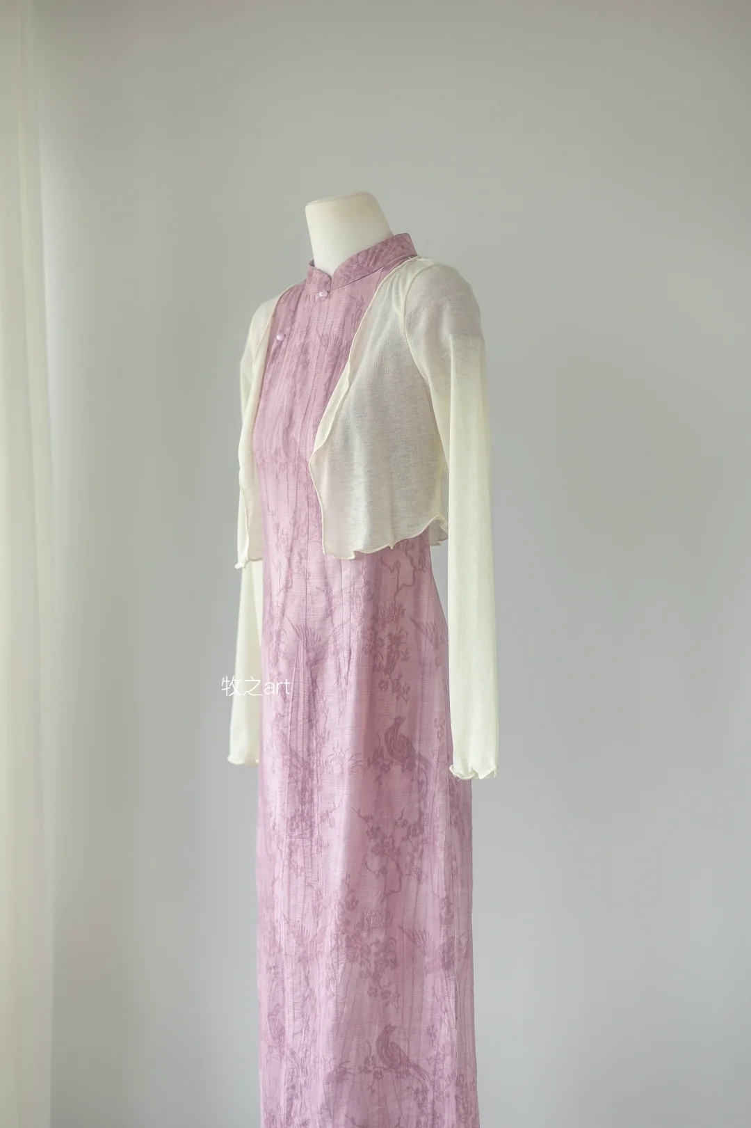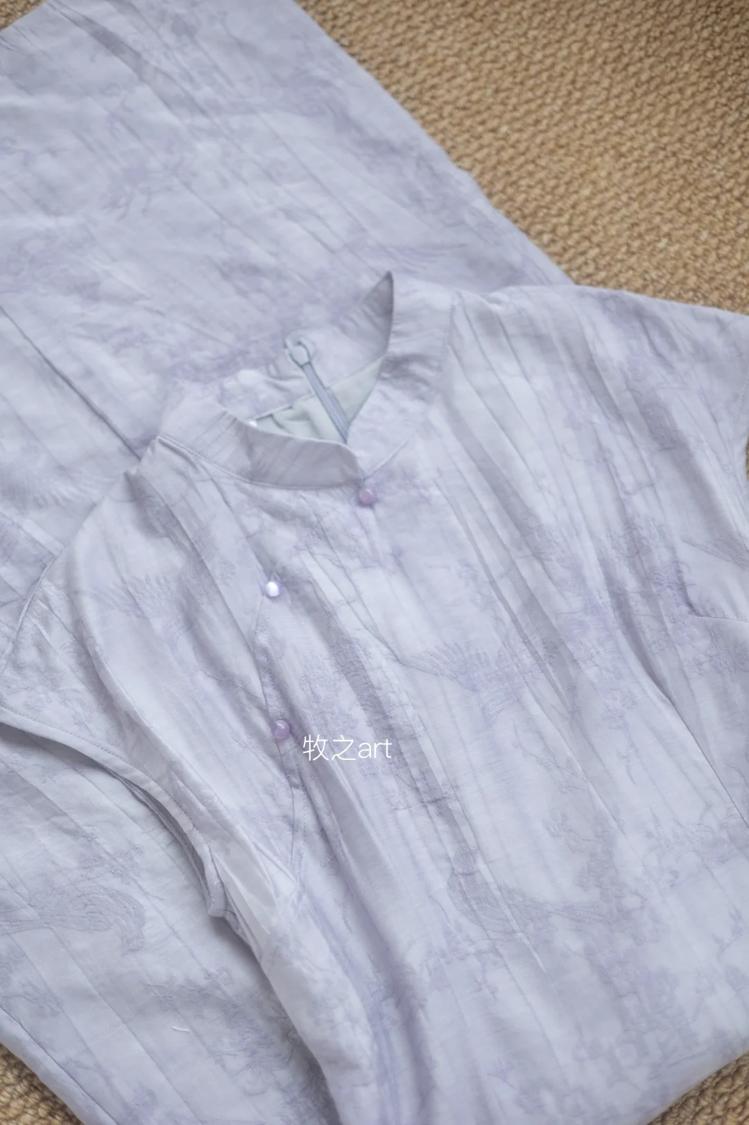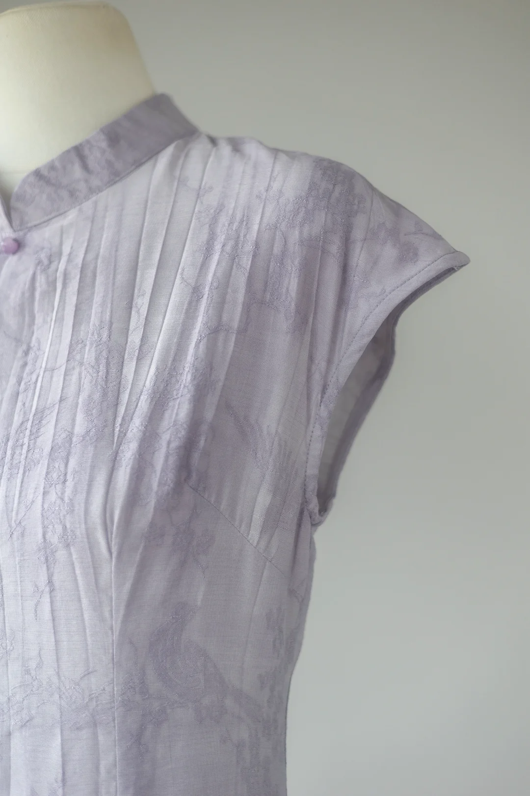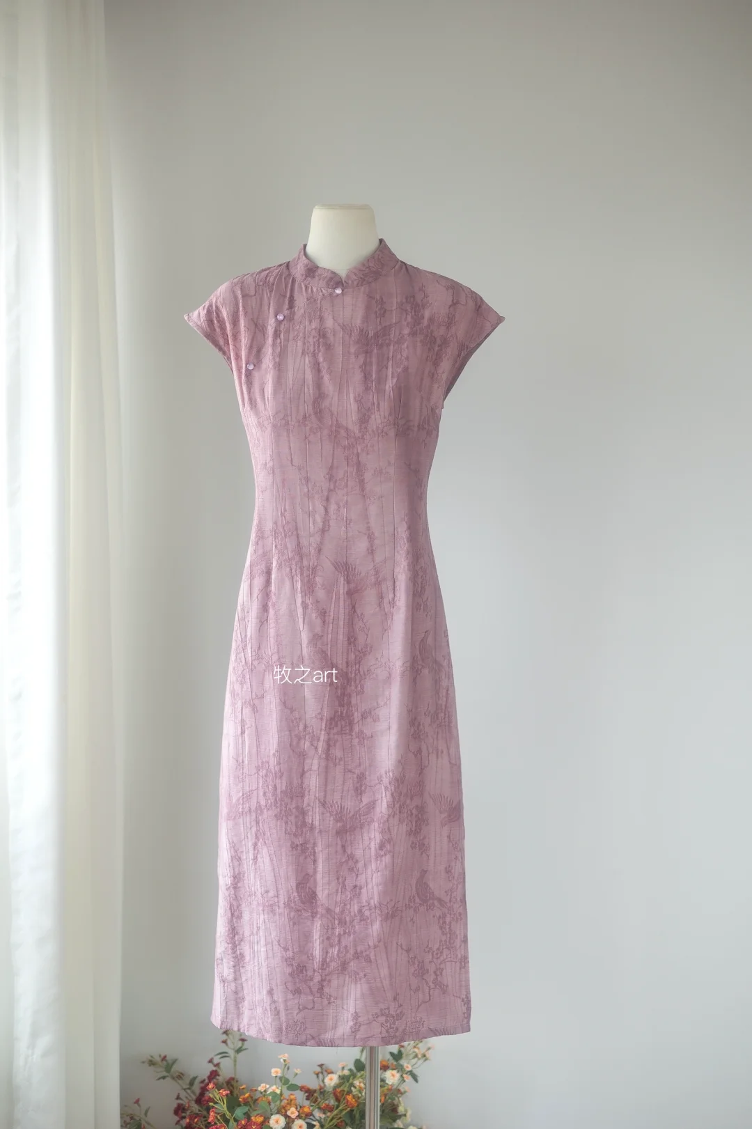 面料是提花纹路,做了炒色工艺,不规则晕染 是很特别又耐看型 矮立领搭配手工盘扣,显得脖子好修长 小盖袖蛮藏肉的,比起无袖款更修饰斜方肌和副乳 整体版型是偏修身,但是又有余量 刚刚好能修饰我们腰腹线条,显瘦 后背拉链,穿脱起来方便 -