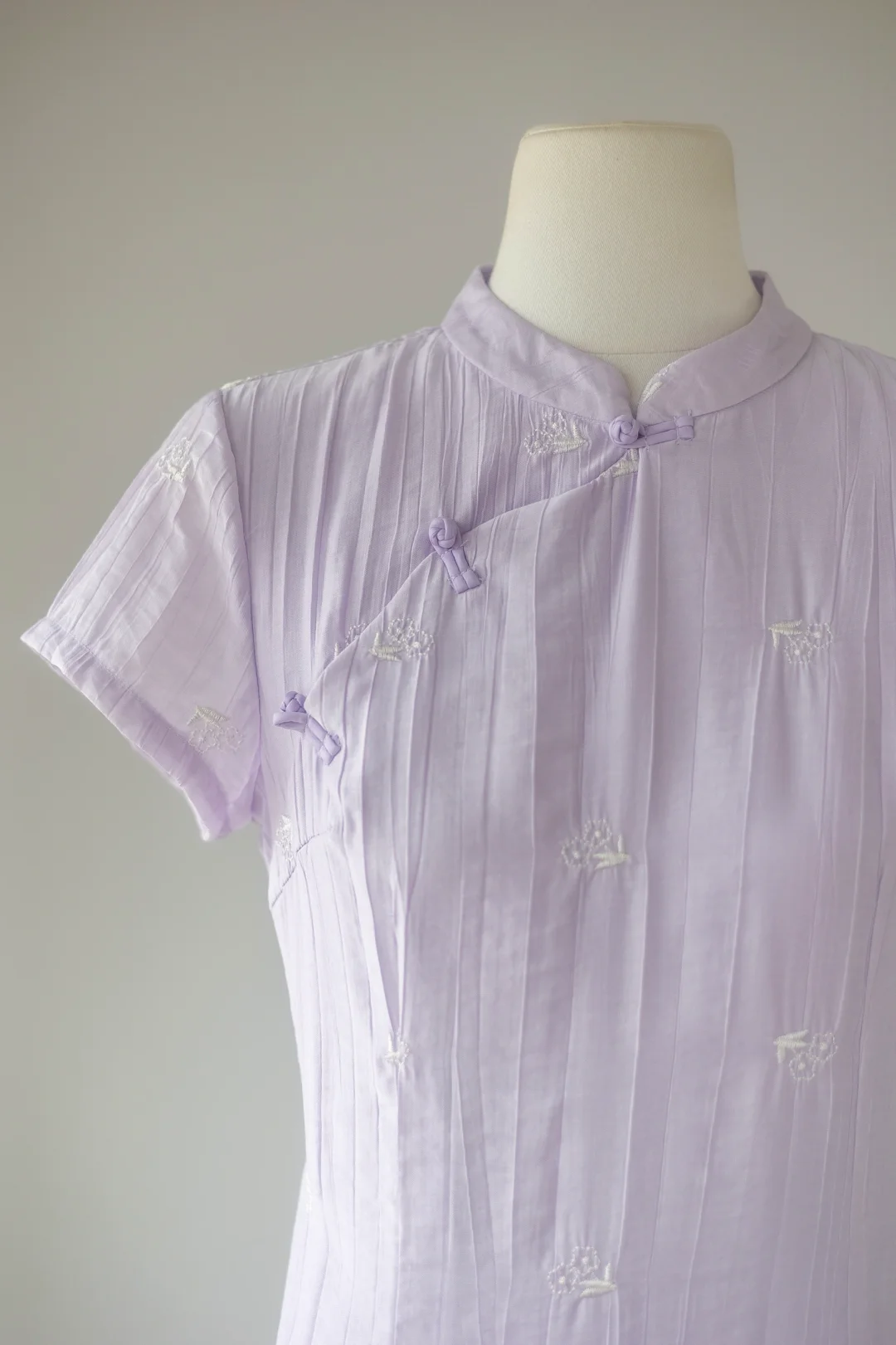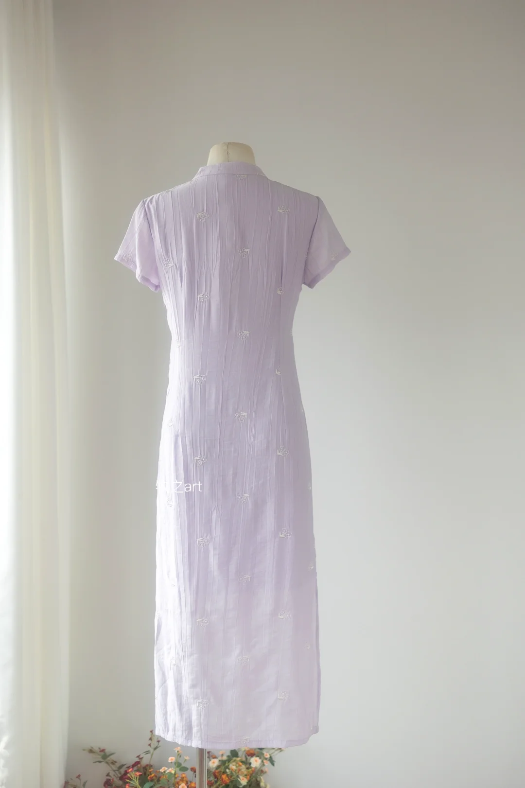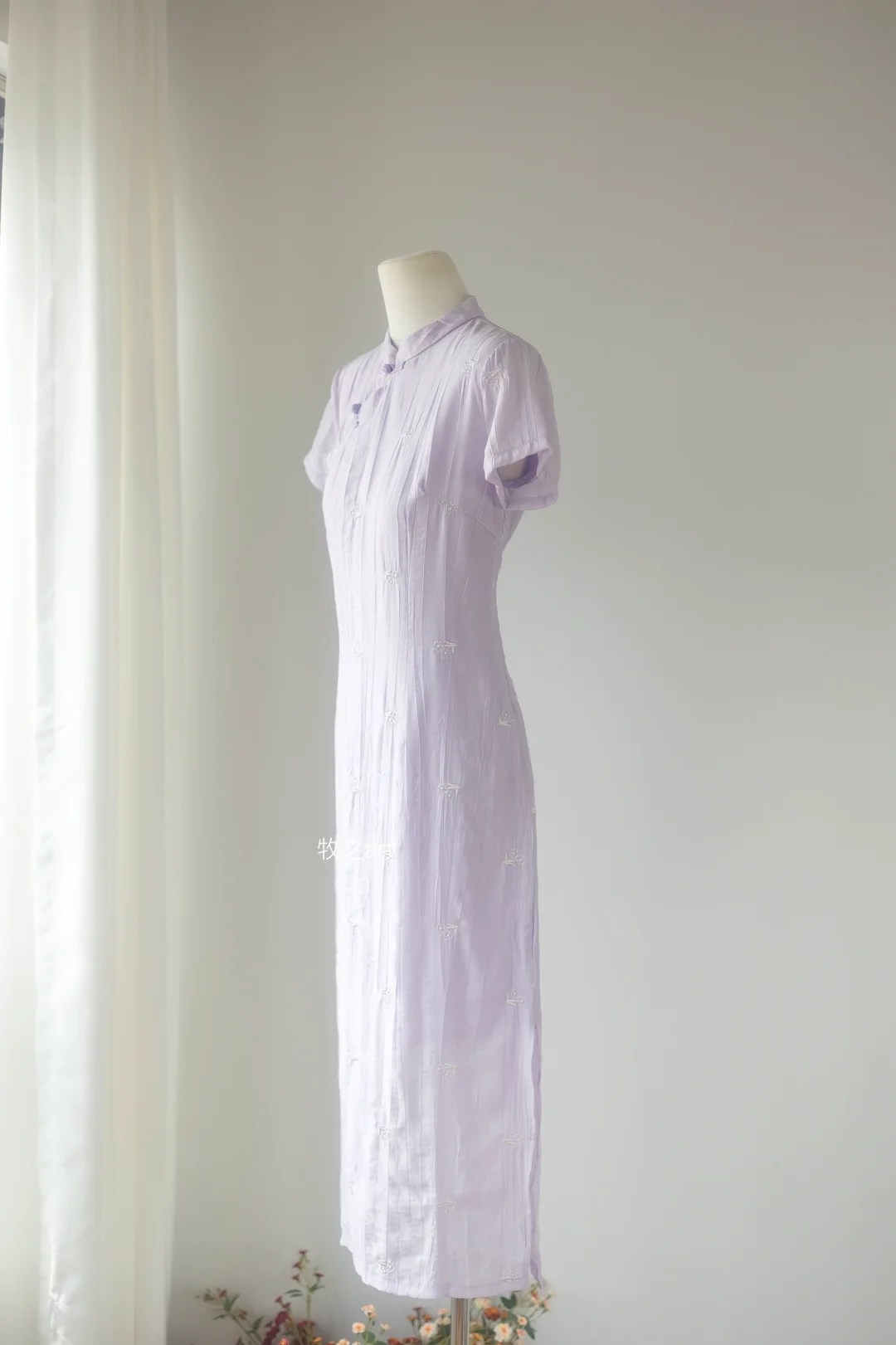 像芋泥波波紫一样,既温柔又显白 矮立领搭配手工盘扣,显得脖子好修长 整幅刺绣非常戳我❤️ 重工有设计感,但是也不会很夸张 日常通勤上班,七夕约会,逛街,旅游拍照打卡 就适合穿这种💜温柔大气的旗袍~~ -