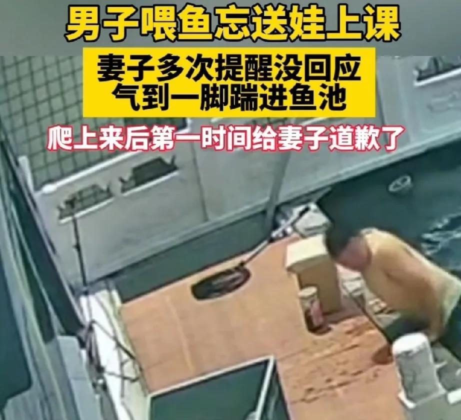 8月1日,河南新乡的杜先生,在水池给鱼喂食。他是名养鱼“发烧友”,因为喂鱼而忘记自己应该做的正事,也为此向妻子道歉。 杜先生坐在水池边,一把一把的往池里面投去鱼食。看着鱼儿的嘴一张一合在争抢食物,觉得这是世界上最美的画面,忘记了时间在飞速划过。 杜先生专心喂食,不知不觉中到了送孩子上学的时间,还沉浸在看鱼争食。就连妻子多次提醒他快去送孩子,也没有听到。 妻子见杜先生充耳不闻,很生气,一脚把他从鱼池边,踹到池水里。 杜先生如梦初醒,从鱼池水里爬上来,第一时间向妻子认错,称不该忘记正事。妻子见丈夫孺子可教,也就原谅他了。 #男子喂鱼忘送娃上课被妻子踹进鱼池##夫妻趣事# #晒图笔记大赛#