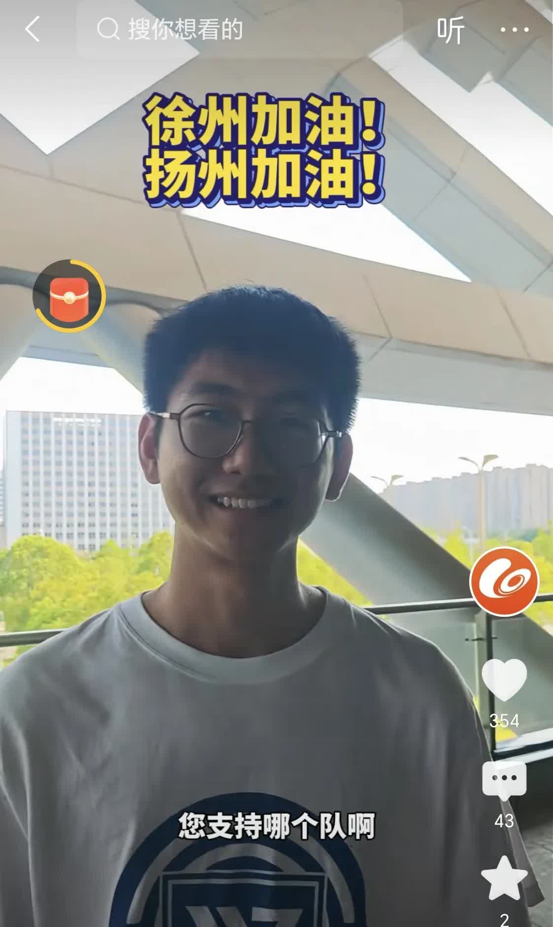 一个扬州小伙子在位于徐州的江苏师大上学并到徐州主场做志愿者,在徐州主场接受记者采访,问他在苏超徐州与扬州对垒时支持谁,真的是一道送命题啊,他思考了半天,蚊子哼的似的低声说支持徐州队,说徐州队中好多队员来自于他们学校的体育学院 ,同时也补了一句扬州加油,太折磨煎熬人了,人格都要分裂了![捂脸]