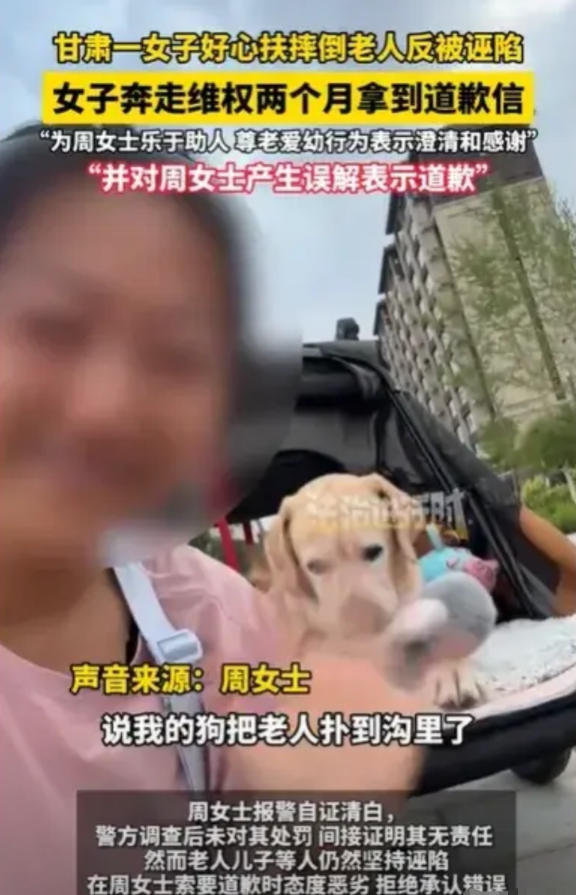 甘肃,女子遛狗时,发现一个老人坐着轮椅,栽倒在沟里,她很着急就过去想扶老人,但她一个人,力气不够,她叫来了3个人,其中一个是老人的儿子,结果大家把老人扶起来,老人的儿子和另外两个人,竟然诬陷女子,说老人栽倒在沟里,是女子的狗扑倒的,他们要女子承担责任,女子觉得很委屈,坚持维权两个月,结果让她哭了。
