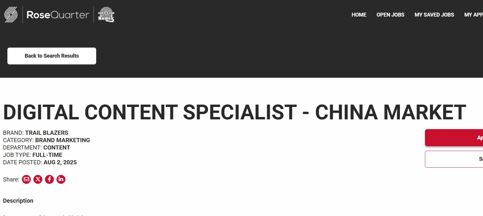 队记援引开拓者网站并表示球队正在寻找一位精通中英文的中国社媒运营,可见对中国市场