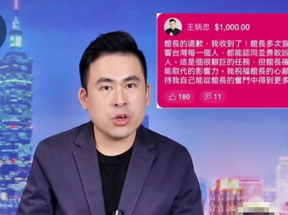 台湾统派代表王炳忠,爆了一个有意思的料,关于馆长的,他自己也觉得有点搞笑: 2020年,馆长在直播时,经常骂他,骂他的爹娘,是经常性的爆粗口,三字经五字经,一大堆的脏话,什么难听话都讲的出。 他当然很气愤啊,为了维护父母的尊严,他告了馆长。 当时,馆长给了赔偿完事。 没想到,前段时间,馆长对邱毅和自己诚恳道歉,说过去无知,经常骂他们,承认错误。 当然,王炳忠不计前谦,也去了馆长的直播间打赏,台湾叫斗内,并且留言了。 他说,搞笑的是,自从馆长改变立场后,自己的老娘,也变成了馆长的铁杆粉丝,撵着看馆长的节目。 看吧,祖国统一是趋势,跟着潮流走,路会越走越宽,譬如馆长。 他表示很欣慰,看到馆长迈出重要的一步,向统派靠近,他把馆长当成了兄弟,兄弟之间,不打不相识。 这才是一笑泯恩仇的典范,为了民族大义,为了统一大业,和解!