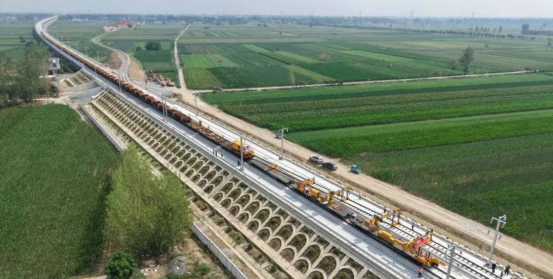 淮宿蚌城际铁路开始全线铺轨 8月6日上午,在安徽省淮北市濉溪县双堆集高铁站内,作