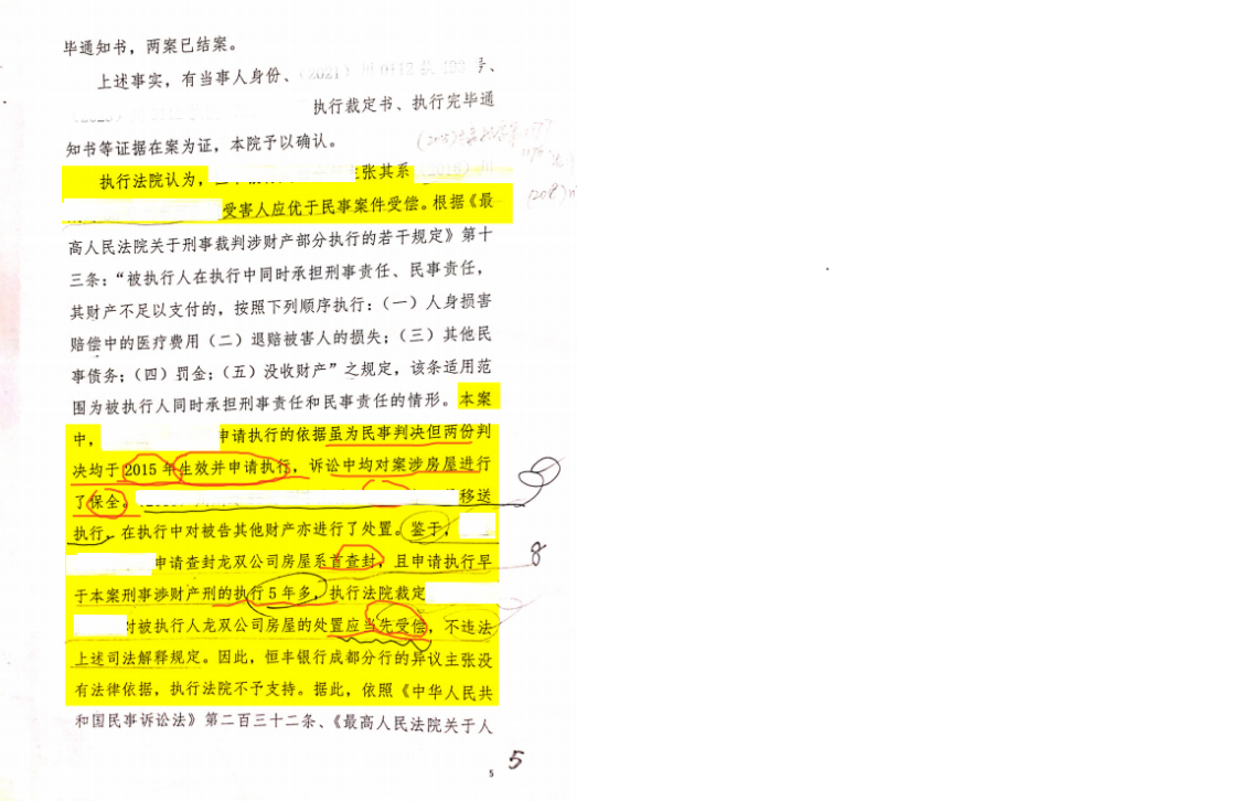 2019 年 10 月,当事人对案涉房产首次查封四年后,某金融机构以该公司涉嫌骗取贷款罪为由,向法院申请对同一房产进行刑事退赔执行,2020 年 12 月该执行申请才从当地中级法院移送至基层法院。