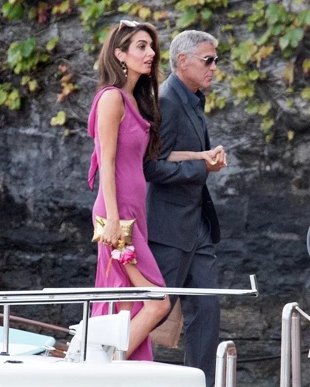阿迈勒和64岁老公好恩爱,他们手挽手出现在意大利的科莫湖。 这位两个孩子的妈妈穿