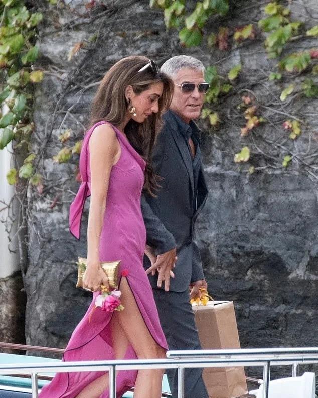 阿迈勒和64岁老公好恩爱,他们手挽手出现在意大利的科莫湖。 这位两个孩子的妈妈穿着紫红色露腿礼服,披肩长发散发出优雅的气质,而她的丈夫乔治·克鲁尼难掩苍老。