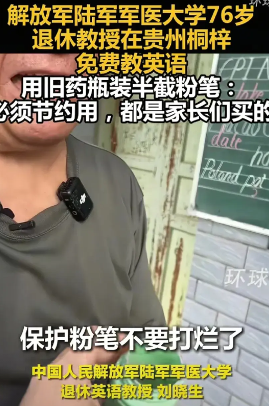 大爷名叫刘晓生,以前是陆军军医大学的英语教授,2012年退休后,他在桐梓县水井社区创办了“坝坝英语班”,义务辅导山区孩子学习英语。