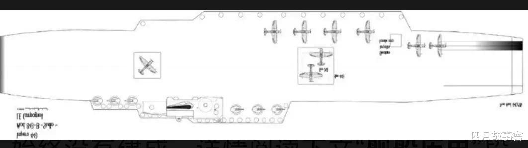 同时,球鼻艏和舰岛的设计也初具雏形,但舰岛被放置在甲板的下一层,作者推测这可能是与战前日本赤城号和加贺号航空母舰类似的多层飞行甲板和开放式机库方案。