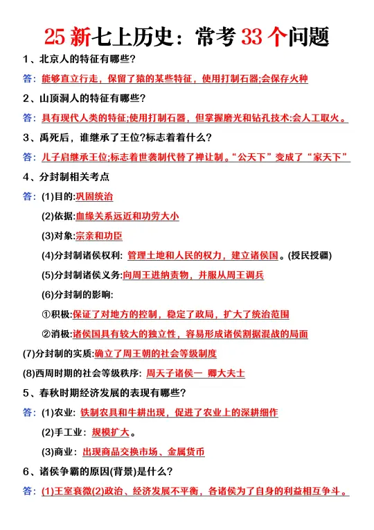 七上历史 家长收藏孩子受益 必考考点 暑假预习 初中历史笔记 七年级上册历史 准初一 每天进步一点点 父母与孩子提高孩子学习成绩