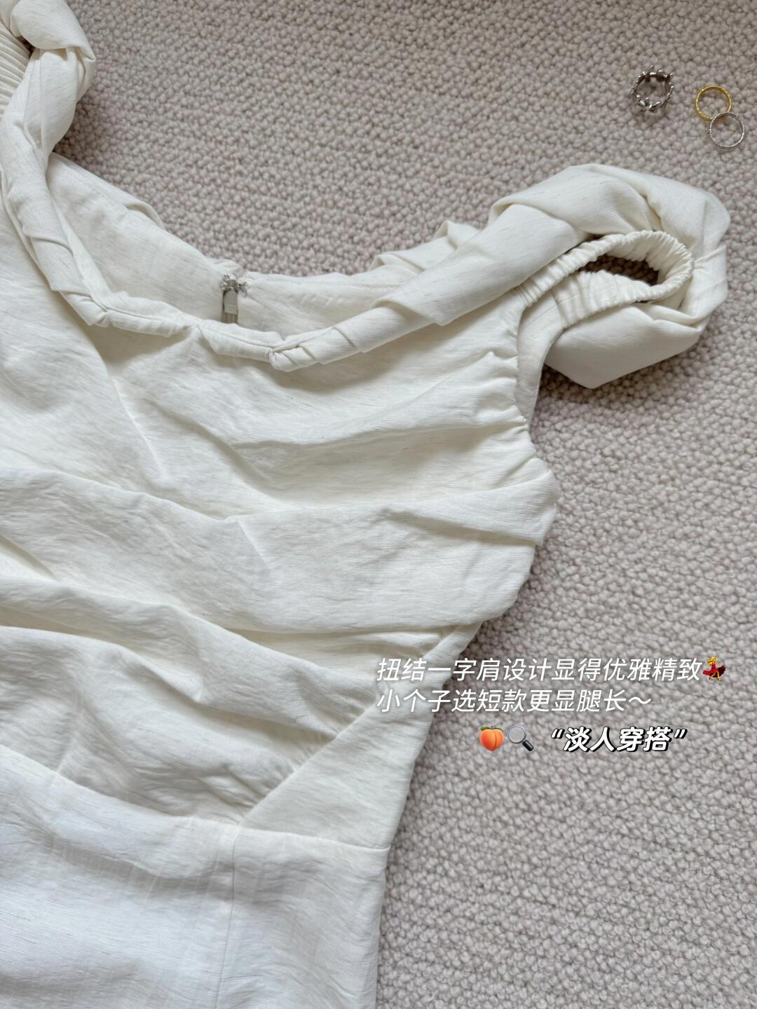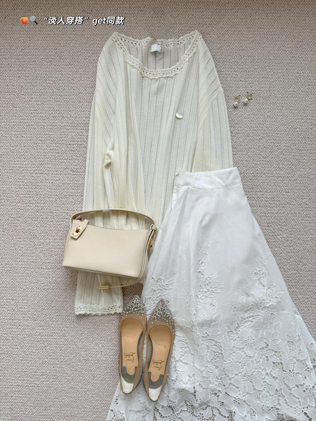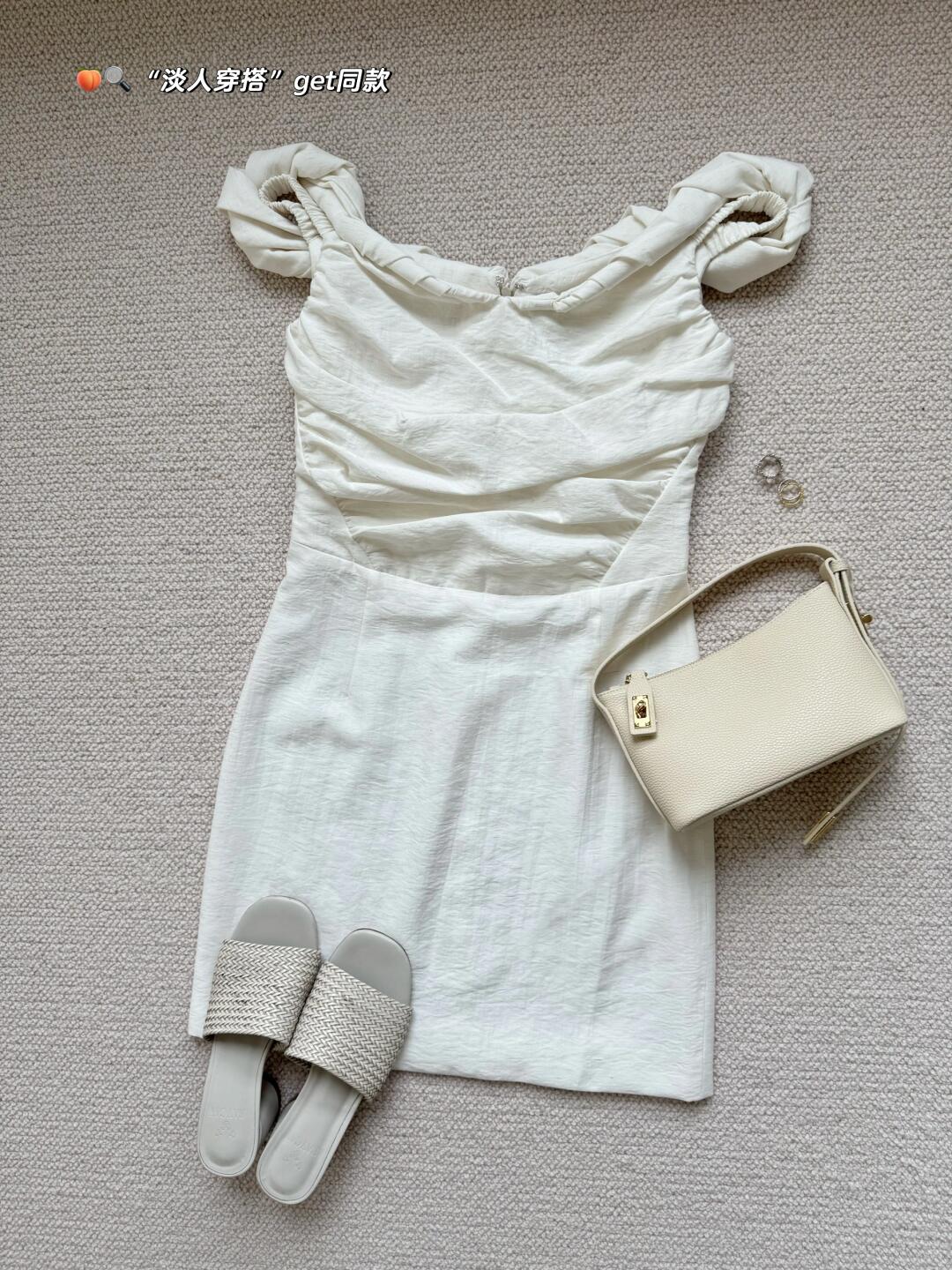 分享一些近期买到的呼吸感all white单品🕊 一字肩纽结连衣裙、蕾丝半裙、镂空罩衫、以及百搭的包包 简简单单又不失设计感 是夏日的清爽密码~ 随风摆动的裙摆 充斥着松弛与自在 宛如行走的夏日氧气 · 🍑🔍【淡人穿搭】,get服饰趋势榜同款淡人独有的轻盈感穿搭~