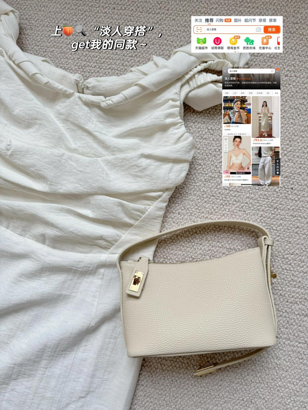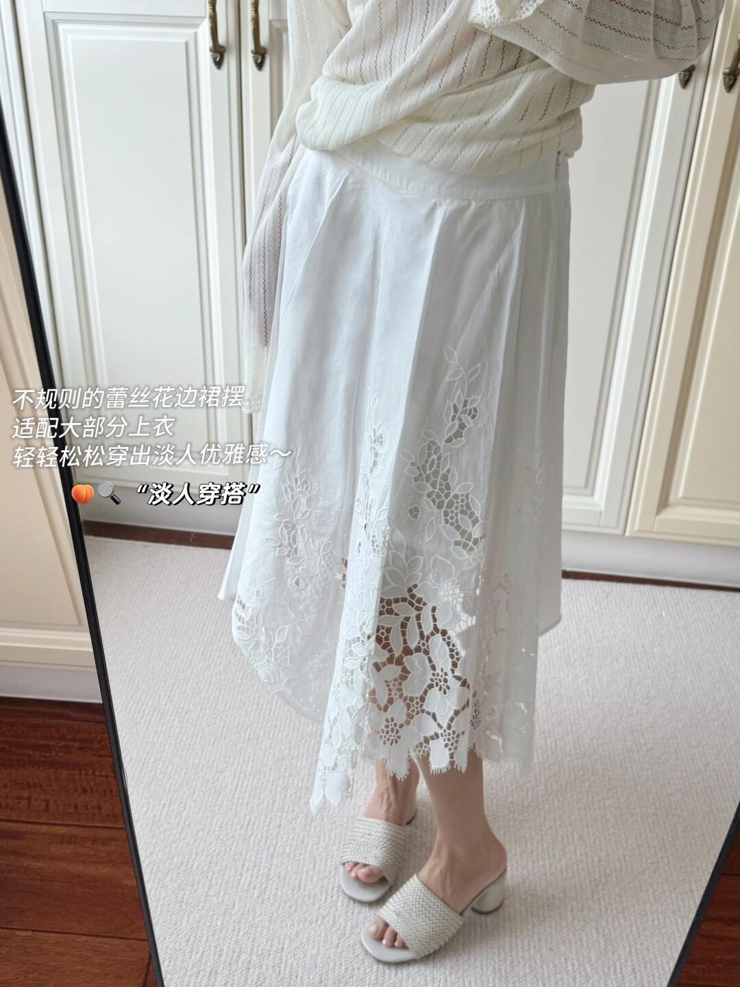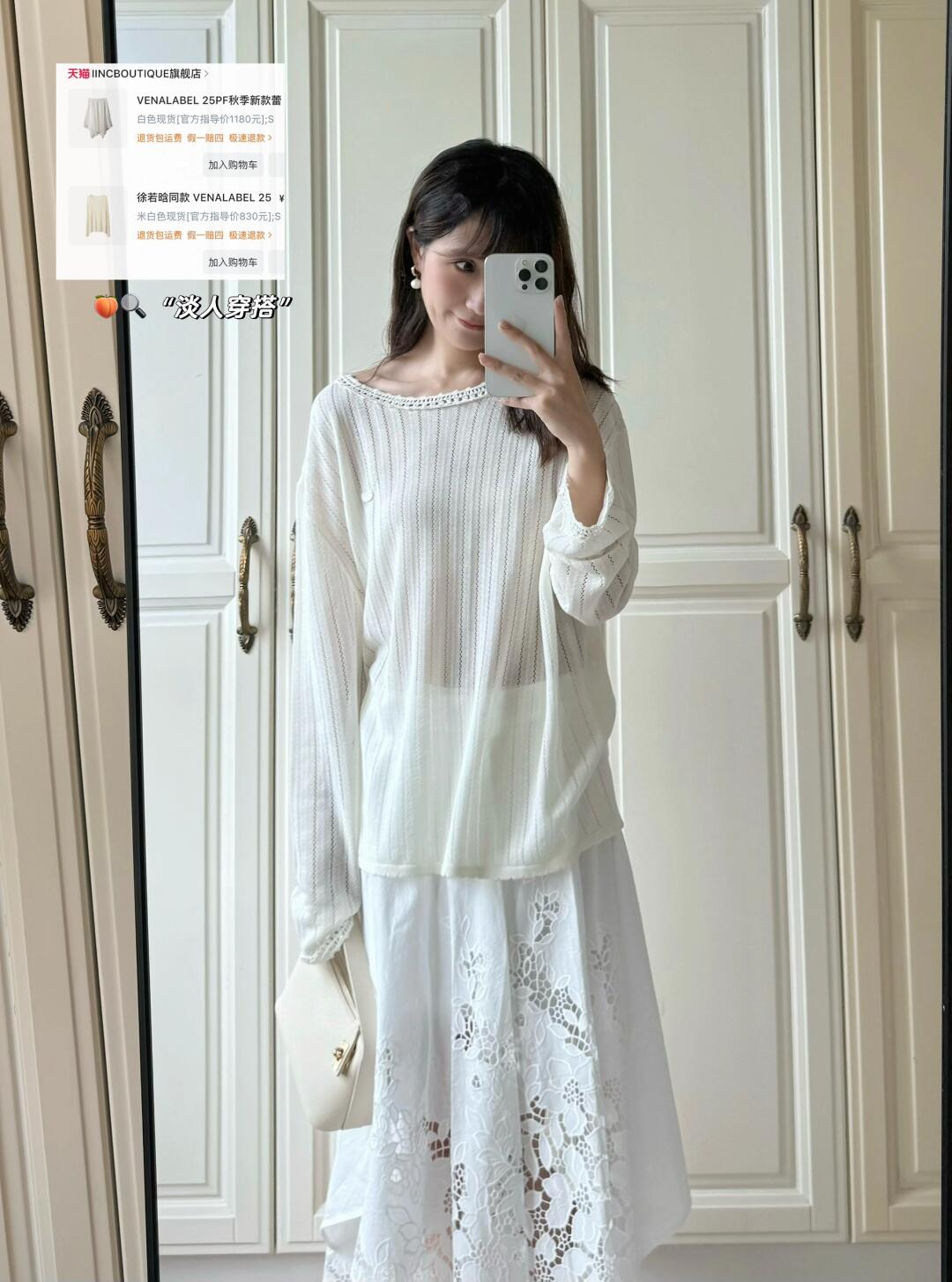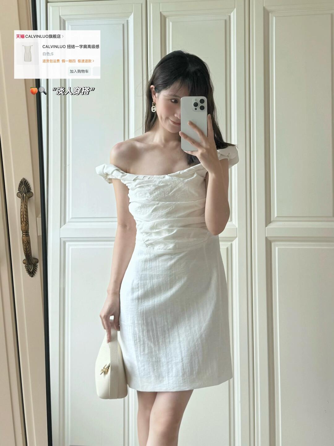 分享一些近期买到的呼吸感all white单品🕊 一字肩纽结连衣裙、蕾丝半裙、镂空罩衫、以及百搭的包包 简简单单又不失设计感 是夏日的清爽密码~ 随风摆动的裙摆 充斥着松弛与自在 宛如行走的夏日氧气 · 🍑🔍【淡人穿搭】,get服饰趋势榜同款淡人独有的轻盈感穿搭~
