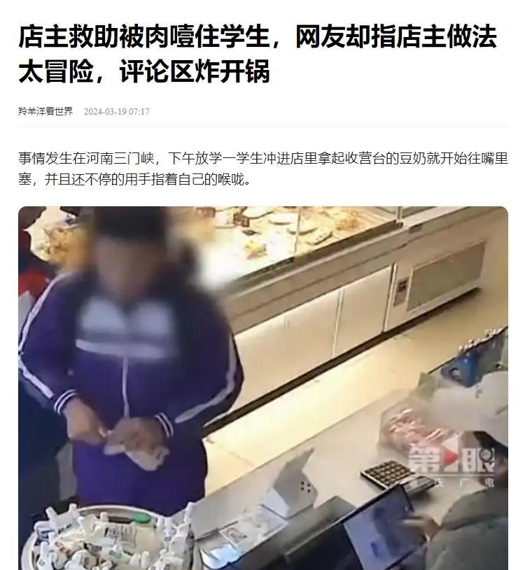 河南三门峡。早上一名学生突然冲进一家店铺吧台,拿起一瓶奶就边喝边向收银员示意求救。这收银员见状发现同学表情难受,嘴唇发紫,她的第一反应就是,孩子被东西噎到了!于是收银员赶紧拍打孩子的背部,但根本没有任何作用,孩子依然非常难受。 想象一下,一个普通早晨,上学路上的小孩突然脸色不对劲,冲进店里抓起饮料拼命想咽下去,却怎么都缓不过来,这事儿听着就让人捏把汗。要是没人及时出手,后果谁敢想? 店主在河南三门峡灵宝市开着一家面包房,平时主要卖些面包蛋糕啥的,早几年就开始干这行,靠着自己学的手艺维持生计。他以前在餐饮圈混过,积累点经验后就自己单干,店面不大,就在市区一条街上。每天起早贪黑,五点多就起来和面烤东西,店里总飘着面粉味。他身材一般,穿围裙干活,偶尔上网刷刷视频,学到些急救招数,特别是那个腹部顶压的方法,记住了怎么抱人用力挤。 他没上过专业课,就靠自学,觉得万一有用呢。收银员是店里的年轻人,从附近地方来的,负责收钱摆货,每天擦柜台,整理饮料啥的。她也看过点急救视频,但更多时间花在店务上,比如数货清账啥的。俩人搭档干活,他管后厨,她管前台,配合还行。店主有时参加本地活动,聊聊生意经,但多数时候守着店。收银员闲时帮打包,处理小订单。 他们的日子就这么过,面对各种琐事儿,像进货清洁啥的。店吸引不少本地人,包括路过的学生,常买点吃的。店主通过视频学到急救后,偶尔跟人提起,觉得这技能实用。收银员处理顾客时,也会多留意点安全事儿。店主出生本地普通家,早年干餐饮,学烘焙后开店。店铺位置方便,客流稳定。他学急救是几年前的事,刷手机时看到的,演示怎么处理咽堵。他反复看,记住拳头放肚脐上,用力顶。收银员二十出头,乡村出身,来店打工。她的工作日常,擦货架,结账,保持店面整洁。店主和她分工明确,他烤东西,她卖货。店主偶尔去商会,交流经验。 早晨七点多,小学生在上学路上吃鸡肉卷,不小心咽堵了,呼吸难受,就冲进面包房。店里收银员看到小孩抓起牛奶喝,还指喉咙示意帮忙。小孩脸难看,嘴唇紫了。收银员觉得是噎着了,赶紧拍小孩背部几下,想帮吐出来。但没用,小孩还难受。收银员绕过去,用手掌对准背中间拍击三次,小孩身体动,但异物没出。他弯腰喘,双手按脖子。 收银员再拍两下,从下往上推,但小孩嘴唇更紫,呼吸急。收银员抓住肩膀,让他直身,又用力拍,力度大点。小孩摇头,比划急,眼睛有血丝。收银员喊后厨帮忙。小孩靠柜台,牛奶瓶掉地。小孩冲进店,直奔吧台,拿牛奶灌,指喉求助。收银员发现表情不对,唇紫,判断噎住。拍背无效果,小孩仍难受。收银员连续拍击,调整姿势,但异物卡紧。小孩脸色加深,动作无力。收银员评估情况,呼叫援助。小孩上学途中吃卷,吞急导致堵。 收银员第一反应拍背,常见方法,但对深堵无效。小孩求助方式,喝奶想冲下,但加重问题。收银员处理时,保持冷静,继续尝试。整个初始阶段,持续短,小孩状况恶化。收银员的举动虽没成功,但争取时间。小孩的举动显示慌张,但选对地方求助。收银员观察细致,快速反应。拍背后无改善,证明需要更有效方法。小孩的唇紫表示缺氧严重。收银员的努力虽有限,但体现责任感。事件发生快,收银员的初始干预重要。 小孩脸色紫深,身体前倾,这时店主从后厨下来,评估后从身后抱住小孩,右手握拳顶肚脐上,左手盖住,用力挤压一次,没出。重复两次,还不行。因为小孩高,书包碍事,路人建议弯腰摘包。店主帮卸包,小孩弯腰,店主调整,再挤四次,第三下时,鸡肉块吐出。过程二十秒,小孩吐后吸气,唇色退,恢复正常。店主给水,让他坐休。事后查,小孩吃卷咽急卡住。 下午,小孩父母带礼回店谢。店主继续干活,收银员清地。小孩一家握手道谢离开。店主用腹部冲击法,标准动作,及时救命。小孩恢复快,无后遗症。父母感激,带水果啥的。事件强调急救重要。店主自学技能发挥作用。路人提醒帮调整姿势。整个救过程高效,异物大小半厘米。父母下午专程来,表达谢意。店主谦虚,觉得该做。收银员也参与后续。 事件后,店恢复正常。急救黄金时间四分钟内,店主抓住。类似情况多,普及必要。小孩上学路吃东西风险高。父母教育小孩细嚼慢咽。店主的事迹传开,获赞。急救法人人学,能救命。事件有惊无险,结局好。店主和收银员合作默契。父母带小孩再谢,巩固关系。急救后,小孩正常上学。店主继续经营,融入经验。事件提醒饮食安全。异物卡喉,及时干预关键。店主的举动,避免悲剧。后续发展正面,家庭感激持久。结局是小孩安全,店主获认可。 这事儿看完,是不是觉得生活中多学点急救知识真有用?你们遇到过类似情况吗,或者学过海姆立克法?欢迎在评论区分享经验,一起普及安全知识!