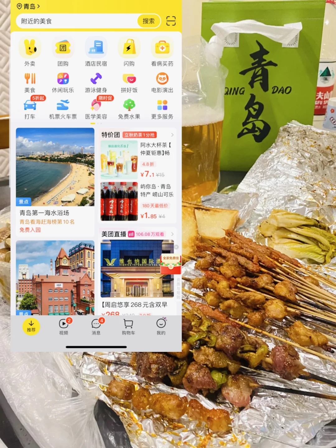 谁懂去青岛用外卖吃烧烤喝鲜啤的快乐青岛,一直心心念念,想去旅行一次这次真的安排上了,实在是太美了!!!趁着暑假,超长假期,去青岛,享受海边的快乐!而且我还发现打开美团搜附近烧烤鲜啤,点下来比直接在餐厅吃还便宜,最重要的是,吹空调吃烧烤喝鲜啤,吃完就能躺平,又划算又方便!在外面玩累了的话回酒店点一份外卖真的不要太chill-来青岛必须要喝啤酒吃烧烤 !!!用美团不用找餐厅不用排队,吃到嗨!!!