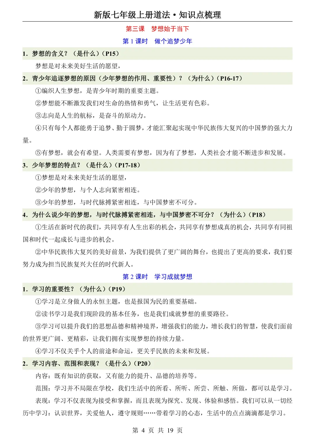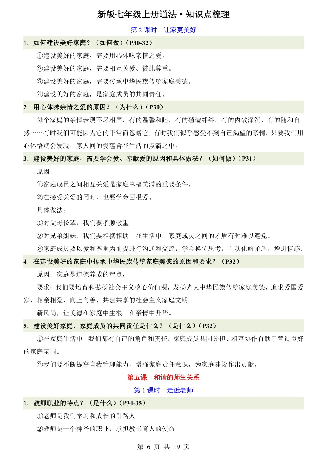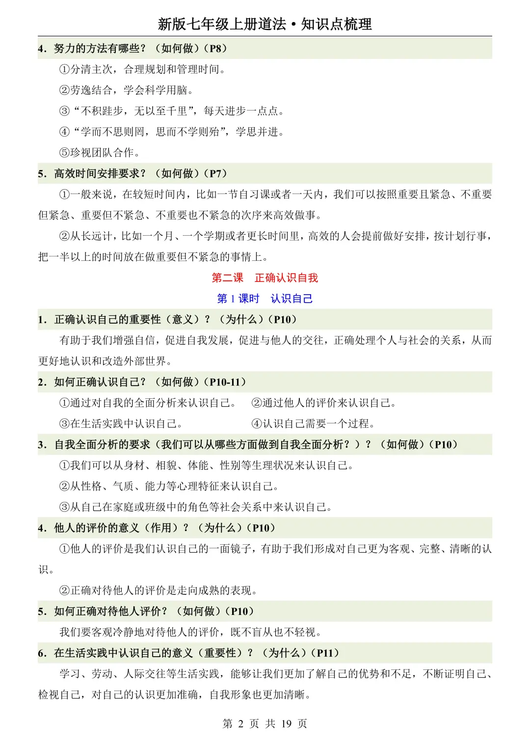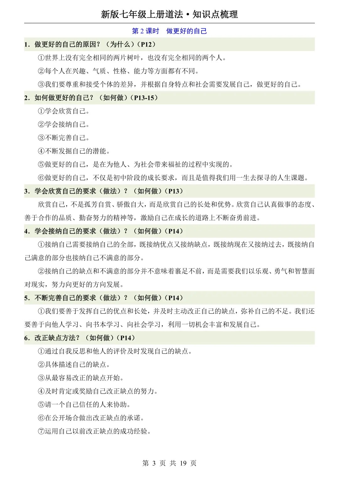 七年级 家长收藏孩子受益 七年级上册道法初一道法暑假预习 提高孩子学习成绩 必背知识点 政治笔记 七上道法 道德与法治