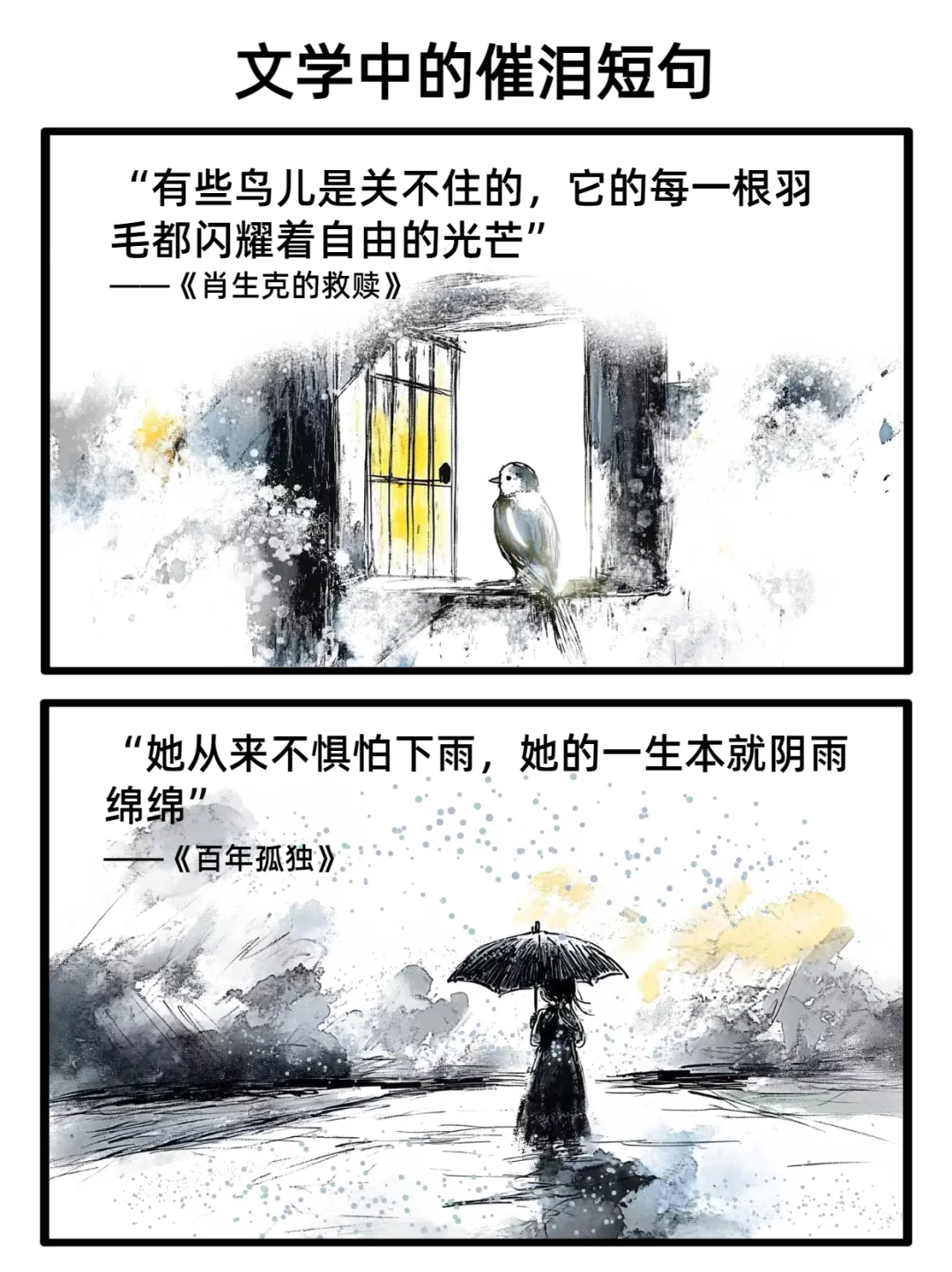 它们不直接描写痛苦,而是用留白与隐喻让读者自己撞上冰山~