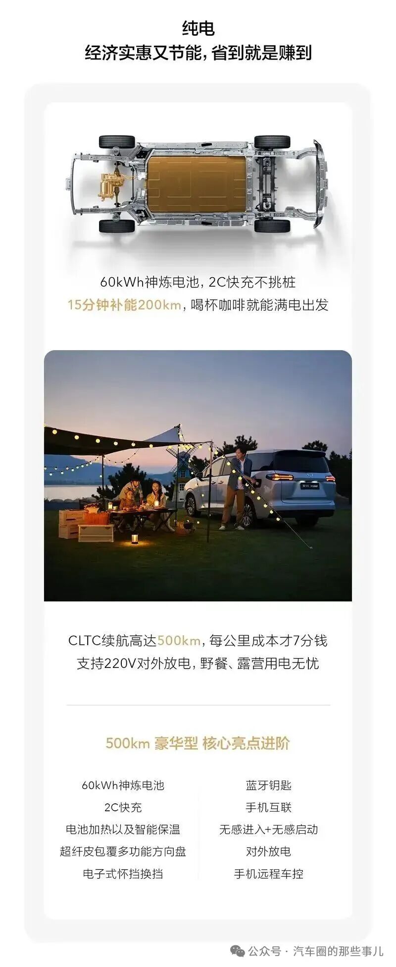 动力方面,五菱星光730汽油版搭载型号为LC4的1.5L发动机,最大功率130kW;插混版车型搭载型号为LBG的1.5L发动机,最大功率78kW,CLTC纯电续航125km,综合续航1100km。纯电版车型搭载单电机系统,最大功率100kW,配备60kWh神炼电池,CLTC续航500km,15分钟补能200km。