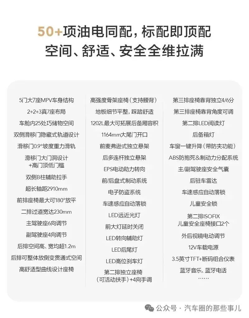全家出行场景下,二排过道宽度最大230mm,乘员从二排到三排不用侧身通过。同时,整车优异的头部空间,让乘客乘坐不压抑。全家出行场景下,二排过道宽度最大230mm,整车优异的头部空间。此外,星光730还配备了同级唯一的电动侧滑门,采用隐藏式轨道设计,门洞高度1145mm,门槛高度也较低,轻拉电滑门即可自动开闭,亦配备了B柱辅助拉手。