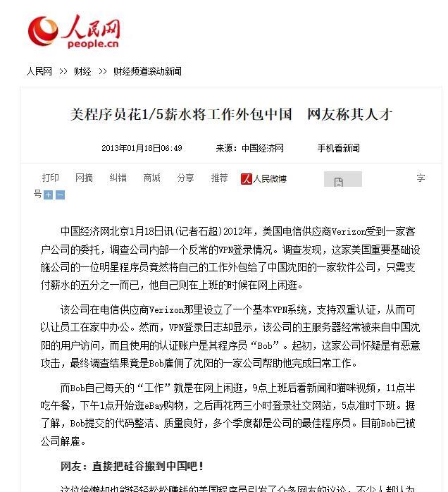 美国程序员年薪25万美金,以5万美金的价格将工作转包给中国同行,每年躺赚20万美金。他每天假装去公司上班,实际上天天在摸鱼。 这个程序员叫鲍勃,化名而已,真实身份没公开。他四十多岁,住在美国中西部一个普通小镇上,家里老婆孩子热炕头,日子过得稳稳当当。鲍勃在一家关键基础设施公司干活,这公司跟电信沾边,具体是威迅电信的客户,负责维护国家级别的基础系统。鲍勃从大学毕业后,就在科技圈混,学计算机科学,精通好几种编程语言,比如C++、Java啥的。 起初他在小公司打拼,慢慢跳槽到这家大企业,当资深开发者。薪水一步步涨,到每年超过25万美金,这在2010年代初算高收入了。公司看重他,因为他交活儿准时,代码写得干净利落,从不拖泥带水。同事们觉得他靠谱,低调不张扬,平时不爱聊天,就埋头干活。人力资源档案里,他的晋升记录清清楚楚,从初级到资深,全凭稳定表现。公司环境严谨,安全要求高,所有人登录系统都得用RSA令牌,双因素验证,一丝不苟。 鲍勃周末带家人去公园玩,生活看起来普普通通,没啥特别。但他工作几年后,对重复的任务开始腻歪,那些调试代码、维护系统的活儿,让他觉得没劲。他开始琢磨怎么减轻负担,在网上逛技术论坛,看到外包服务的帖子,就动心了。他联系上沈阳一家软件公司,通过邮件聊了几轮,敲定合作。他每年付5万美金,让对方接手大部分任务。为了让对方能登录公司网络,他把RSA令牌寄过去,那玩意儿是小塑料设备,能生成验证码。 沈阳团队收到后,按美国时间上班,通常是他们那边深夜,敲代码、调试、提交更新。鲍勃自己呢,每天九点到公司,坐工位上,打开电脑,但不干正事儿。他浏览Reddit,看各种帖子;上YouTube,看猫视频;去eBay,逛拍卖,买电子产品;还刷LinkedIn,更新简历,发连接请求。午饭时间,他吃三明治,继续上网。下午写个简短报告,假装总结当天工作,发给主管。五点准时下班,开车回家。就这样,他啥都不用出力,年年躺赚20万美金。 中国团队效率高,价格低,活儿干得漂亮,公司还以为鲍勃是天才。办公室里大家忙得团团转,他却气定神闲。几年下来,没人起疑,因为他的绩效一直顶尖,甚至年年拿优秀员工奖。公司安全政策严,但鲍勃钻了空子,让外人用他的凭证访问系统。这事儿持续到2012年,才东窗事发。公司安全团队在查VPN日志时,发现沈阳IP反复连接,用的是鲍勃的账号。他们起初以为是黑客入侵,赶紧请专家来查。调查员分析流量数据,扫描鲍勃电脑,发现硬盘里有成百上千的发票PDF,全是付给沈阳公司的钱。浏览器历史记录显示,他天天上网冲浪,不是写代码。 监控录像也证实,他坐在那儿,鼠标动来动去,看的都是无关东西。公司高层震怒,这不光是偷懒,还涉及安全风险,因为公司处理敏感数据,外包给国外等于泄露机密。鲍勃面对证据,先否认,后承认。他被直接开除,合作终止。公司加强了监控,从此日志审查更严。网上曝光后,好多人说鲍勃聪明,但公司不这么想,他丢了饭碗。调查显示,他可能在多家公司玩这套把戏,赚了不少。但这事儿暴露了职场问题,好多人开始反思,外包虽省事儿,却有风险。 鲍勃的例子不是孤案,现在越来越多程序员在网上接活儿,中国开发者通过平台赚外快,形成一股风潮。但企业得警惕,安全第一。鲍勃丢工作后,生活咋样没报道,但肯定不轻松。回想起来,这事儿接地气,职场里谁没想过偷懒?但鲍勃玩得太大,钻空子到这份儿上,终究纸包不住火。想想看,年薪高不代表轻松,压力大时,人总想找捷径。但外包给国外,尤其敏感行业,等于玩火自焚。公司信任员工,他却辜负了。沈阳团队干活儿认真,价格实惠,这也说明全球分工越来越细。 但鲍勃的做法,终究违规。网友叫他“人才”,但现实是,他付出了代价。职场诚信最重要,偷鸡摸狗迟早露馅。类似事儿现在还多,企业用AI监控,员工上网痕迹全记录。鲍勃案子提醒大家,聪明反被聪明误。外包本是企业策略,他个人操作,风险自担。沈阳公司接单,帮他写代码,效率高,成本低,这点没毛病。但鲍勃隐瞒事实,假装上班,纯属欺骗。 调查过程详尽,证据铁板钉钉,他没法抵赖。开除后,他或许找新工作,但简历上这污点,难洗白。整个事件在2013年爆出,各大媒体报道,CNN、BBC啥的,全世界都知道了。鲍勃成反面教材,职场课本里常提。想想那些天天加班的程序员,看到这新闻,肯定五味杂陈。鲍勃躺赚几年,但结局惨。企业从中学到,加强安全审计。全球外包潮流不可挡,中国开发者实力强,接国际单子越来越多。但像鲍勃这样瞒天过海的,少见。职场生存,靠真本事,别总想歪门邪道。 鲍勃这事儿,到头来教训深刻。你觉得年薪25万美金转包给中国同行躺赚20万美金可行吗?职场有啥类似经历?欢迎留言分享你的看法,大家聊聊。
