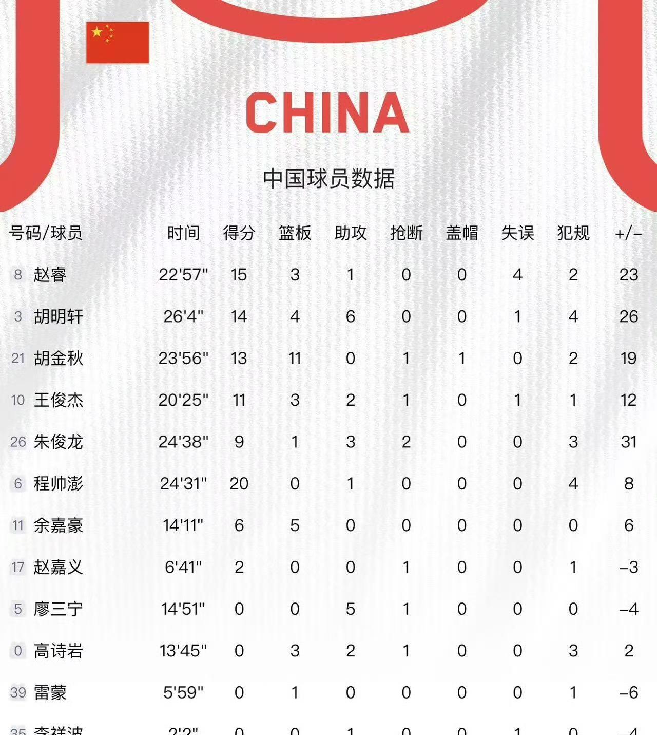 胡金秋接受采访非常冷静。 第一次完整地看了新组建的中国男篮的比赛,中国队以90:68大胜约旦队,以三战全胜的成绩排名小组第一。 中国队获得直接晋级亚洲杯八强的资格。 10-0开局梦幻,一下心中有底了;但17分的领先优势被缩小到只有6分,心又被吊了起来。 凭借赵睿的爆发,中国队没有继续慌乱,半场结束47:38领先。 下半场虽然开局不利,但中国队外线手感不错,连续命中,比分领先20分了,心中笃定。 最后不负众望,90:68,大比分取胜。 赛后接受采访,主力中锋胡金秋非常冷静:听从教练安排,做好全队防守,执行坚决果断。 中国队5人得分上双; 胡金球13+11两双,表现持续稳定; 赵睿15分3篮板,其中第二节单节11分助中国顶住对手反扑; 程帅澎替补出战三分球10中5夺得20分,非常给力。 淘汰赛加油[点亮平安灯][点亮平安灯][点亮平安灯] #头号创作者激励计划#