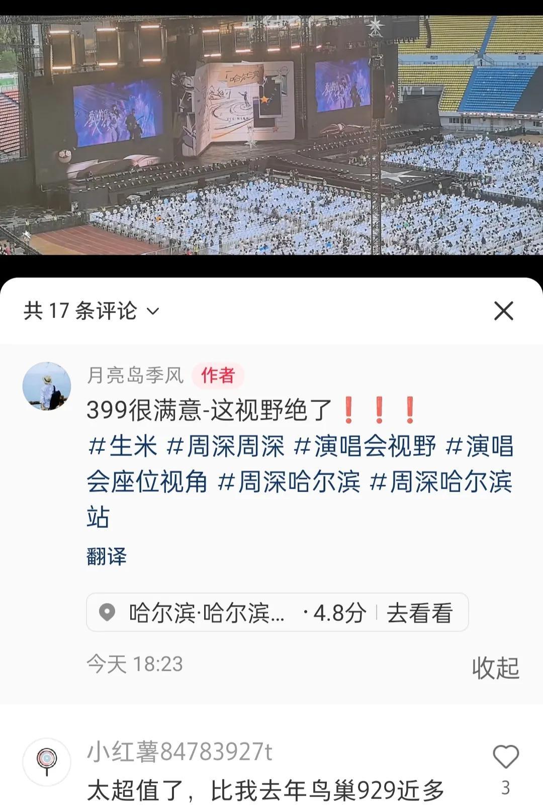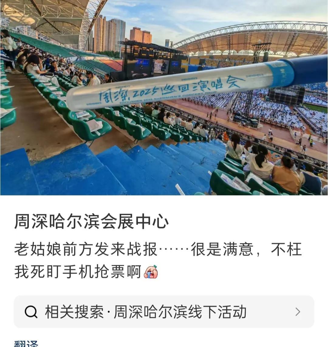 这一排穿白衣服的人是干嘛的? 周深哈尔滨演唱会上,内场最后一排座位上,坐着一排穿白色衣服的,(像制服)是干嘛的?不是安保人员吧! 看了一下现场发的位置,大家都挺满意的,在看台就可以看到小舞台了! 今晚还有无人机表演哦! 今天下午彩排的时候下了好大的雨,还好现在停了放晴了,希望晚上都不会下雨了! 期待期待! #头号创作者激励计划#