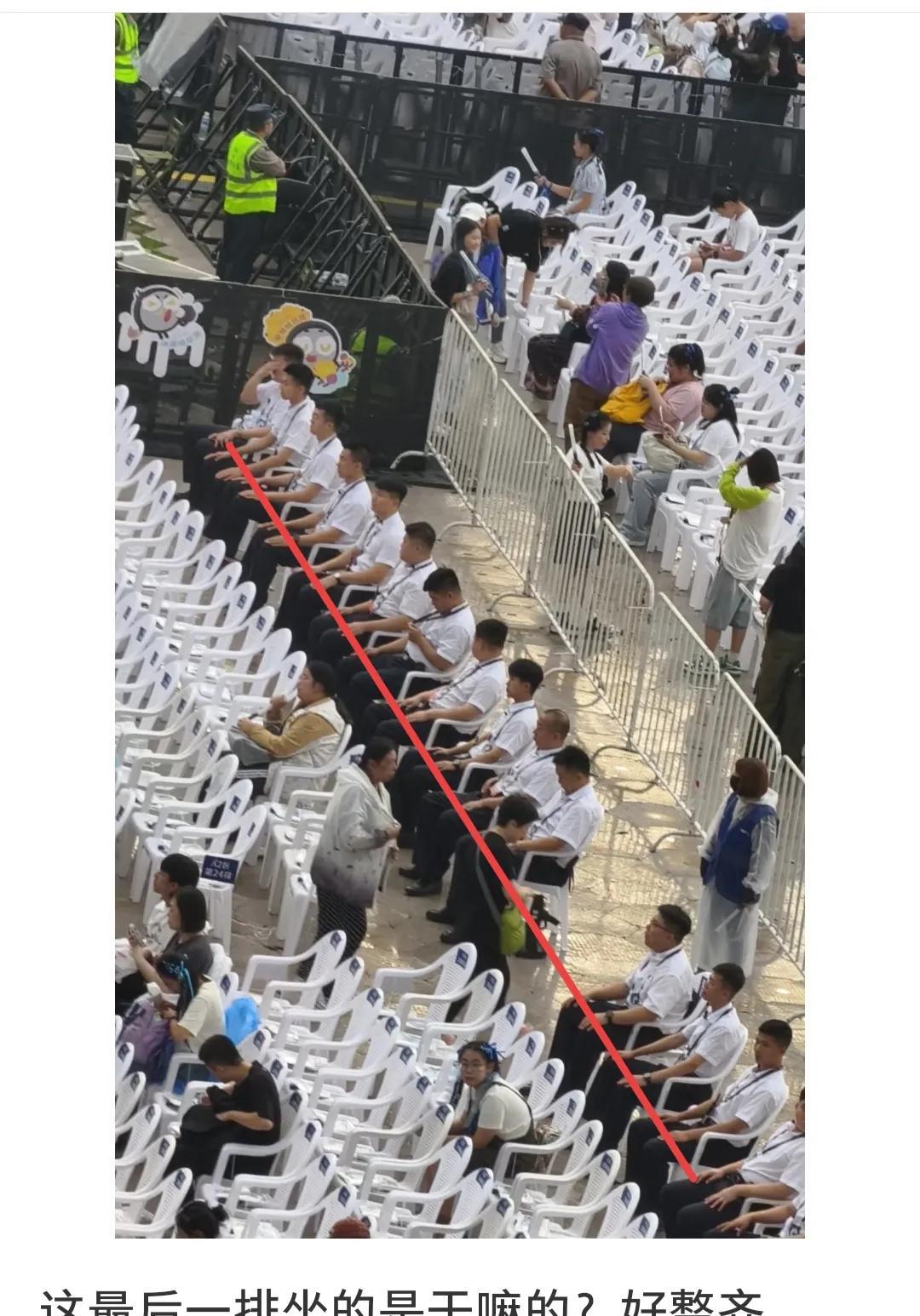 这一排穿白衣服的人是干嘛的? 周深哈尔滨演唱会上,内场最后一排座位上,坐着一排穿