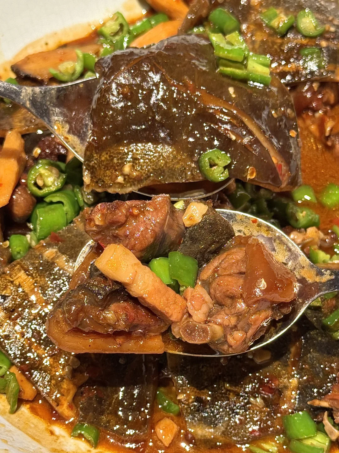 菜椒黄焖甲鱼给我点点点!!肉质鲜嫩还特别的入味!!裙边肥厚一口下去简直太好吃了….