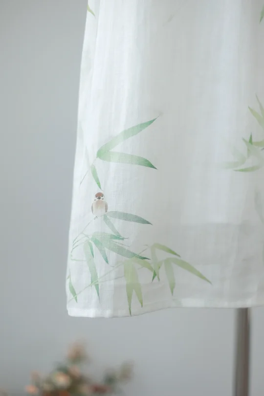 枝头喜鹊啼,报喜来无遮。 可爱又寓意很好的图案,还是改良的A字旗袍 遮肉显瘦 微胖姐妹也能穿的新中式连衣裙 全苎麻的面料很有质感!天然的植物纤维,无麻不夏天~ 会皱会有麻结,这是麻纤维的特性,介意的姐妹慎拍 4️⃣码/少量现货在仓的 -