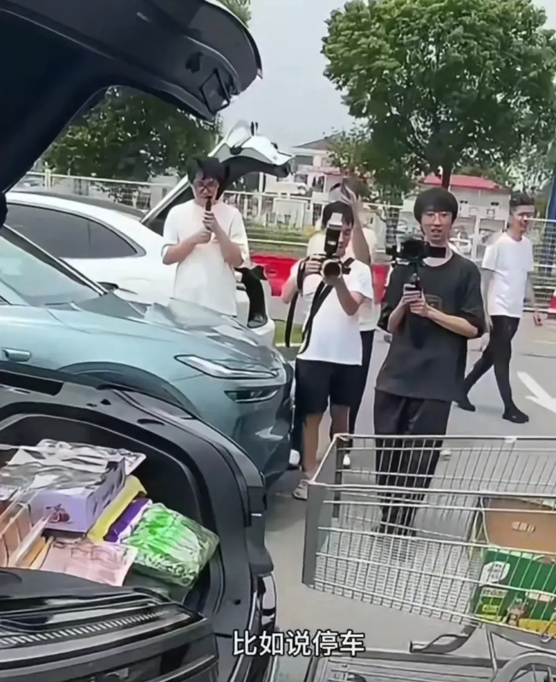 像大袋纸,大瓶牛奶,大包装零食,一购物车的东西全部放入前备箱。