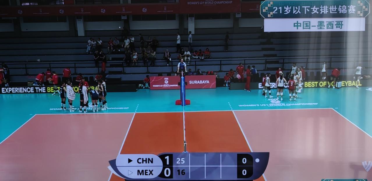 [U21女排世锦赛]小组赛:中国——墨西哥 实时战况: 8月11日上午11时,U21女排世锦赛B组,中国——墨西哥的比赛开打。第一局开始,中国首发:赵喆熙,单兰沣,李晨暄,李涵宇,朱航霆,单琳倩。2:0,中国领先。4:0,5:0,李涵宇发球得场。6:0,墨西哥暂停。6:1,7:1,单琳倩。8:1赵喆熙。8:3,9:3,10:3李晨暄。11:3,12:5,13:7,13:9,14:9,李晨暄。14:10,16:10,16:13,18:13,18:14,19:14单兰沣。20:15,21:15,赵喆熙。墨西哥暂停。22:16,23:16李涵宇,24:16,25:16,中国胜第—局。大比分中国队1:0领先! 第二局开始,中国3:1领先……