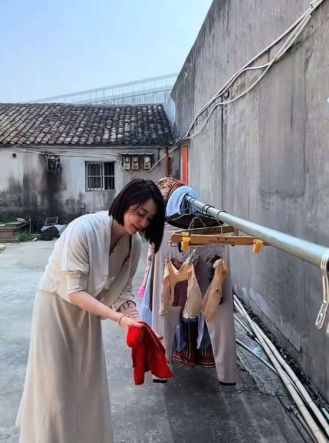 手拿护甲面如花 墙根晒衣吸眼暇 出门讨银兄莫念 归家定让汝抱娃