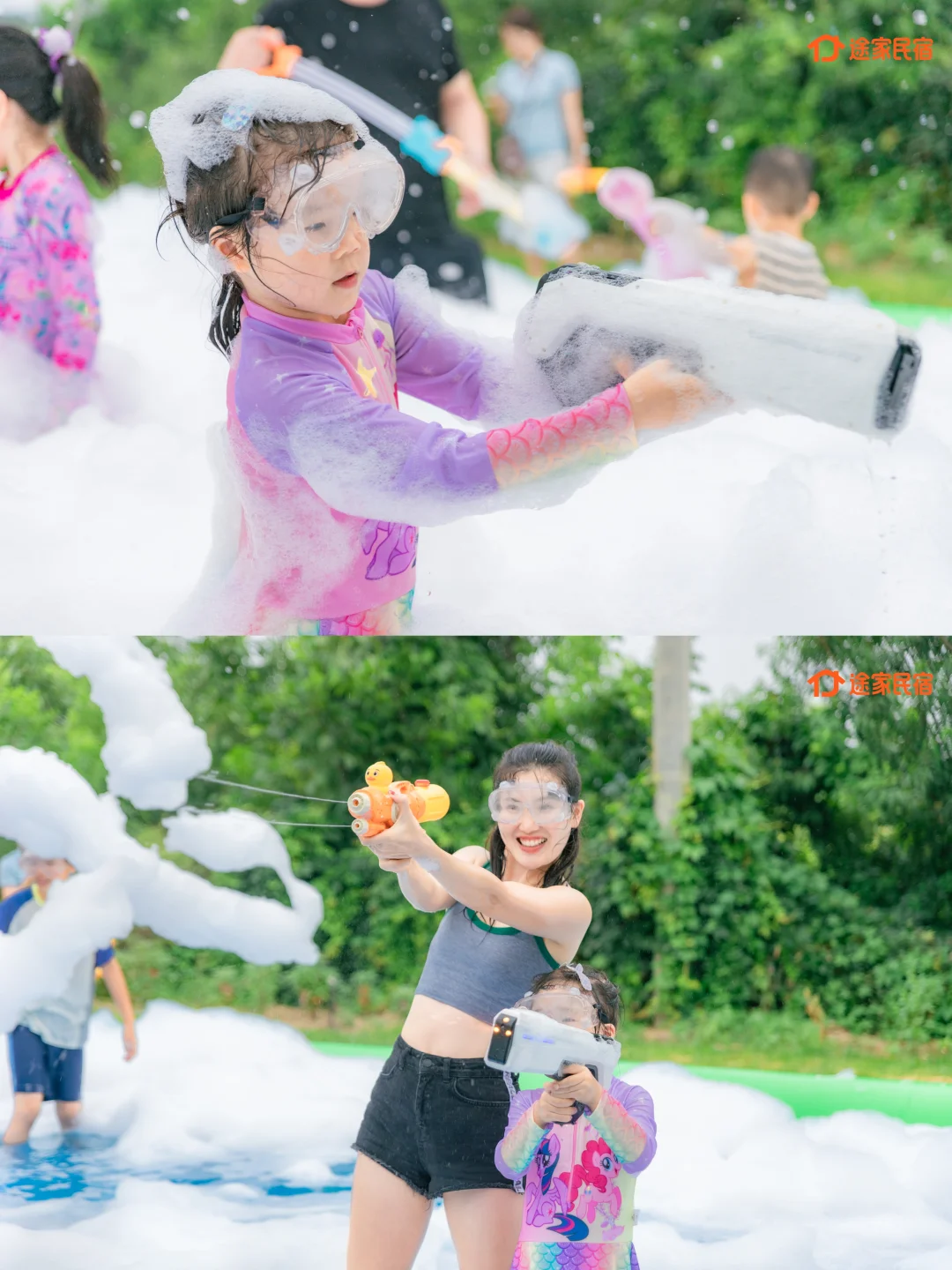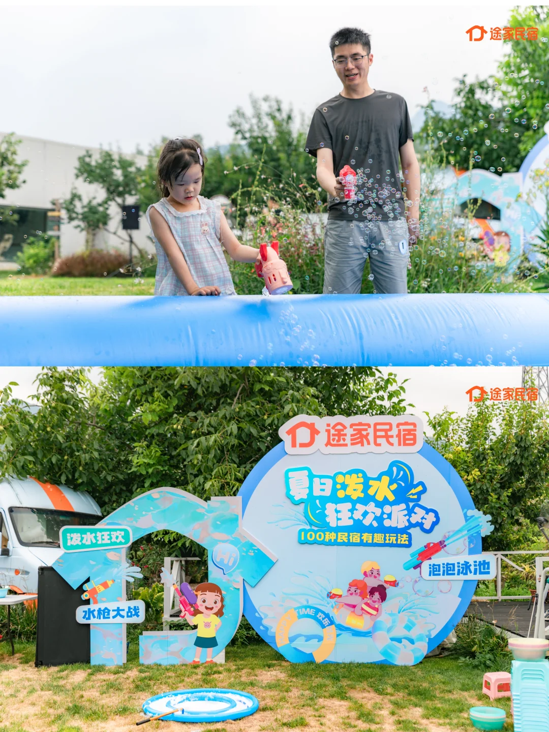 hi,我是南瓜晨~ 上周末带5岁念崽,参加途家民宿组织的“夏日泼水狂欢派对”活动 去京郊解锁了超清凉过夏天的玩法, 一家三口直接玩疯 念崽回家路上还在念叨“妈妈明天还去泼水吗?”😂 推荐给大家! - 📍地点:怀柔·维花园民宿 (大水峪村) 民宿超赞,环境和服务都hin好,超适合带娃玩水,念崽玩得好嗨 亲子家庭多人聚会推荐住民宿,比酒店空间大,活动范围广,性价比更高(6个人住酒店得订3间房,但民宿可以订一整栋,还能在一起玩更方便啦) - 1️⃣ 梦幻泡泡泳池 一整个泳池被绵密泡泡淹没,像掉进云朵里☁️ 念崽在泡泡里扑腾打滚,头发眉毛上全是泡泡,一整个笑到停不下来 - 2️⃣ 超嗨水枪攻防战🔫 念崽拿着小水枪,追着黑衣人滋水 全场水花四射,大人小孩们都玩得超投入,瞬间降温10度!清凉感拉满 - 3️⃣ 泼水小考验💦 亲子分组PK,念崽负责石头剪刀布一决胜负,阿杜主攻结果,全身湿透也超爽 泼出去的不是水,是快乐~念崽还意外赢了个泼水王的称号,得意坏了! - 看着念崽和新认识的小伙伴一起玩耍,好治愈呀 不禁感慨,这才是夏天的正确打开方式 - ✨ 途家这次活动真的太会了 组织有序,工作人员超nice,安全措施到位,水质很干净,放心玩 玩水道具、换衣服的场地都备好了,我们只带了换洗衣物 氛围超棒!认识了好多有趣的亲子家庭,念崽交到新朋友超开心 📝 小Tips - 必带! 至少带2套泳衣、浴巾、拖鞋、防水手机袋、防晒霜、驱蚊液 - 民宿环境超美,随手拍都是大片~给娃多带几套漂亮衣服换着拍 - 怀柔空气超好,玩完水在附近吃个虹鳟鱼,周末不要太完美 - 高温天带娃出门本来有点怵,但这次真的值得!娃放电彻底,笑声没停过~ 途家这次的活动策划太懂亲子家庭的心了,真心安利所有亲子家庭订民宿玩,尤其周末来郊区玩,不用特种兵,chill过周末❤️