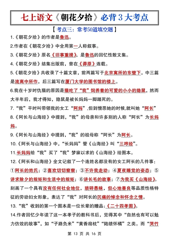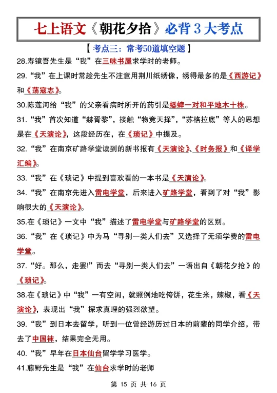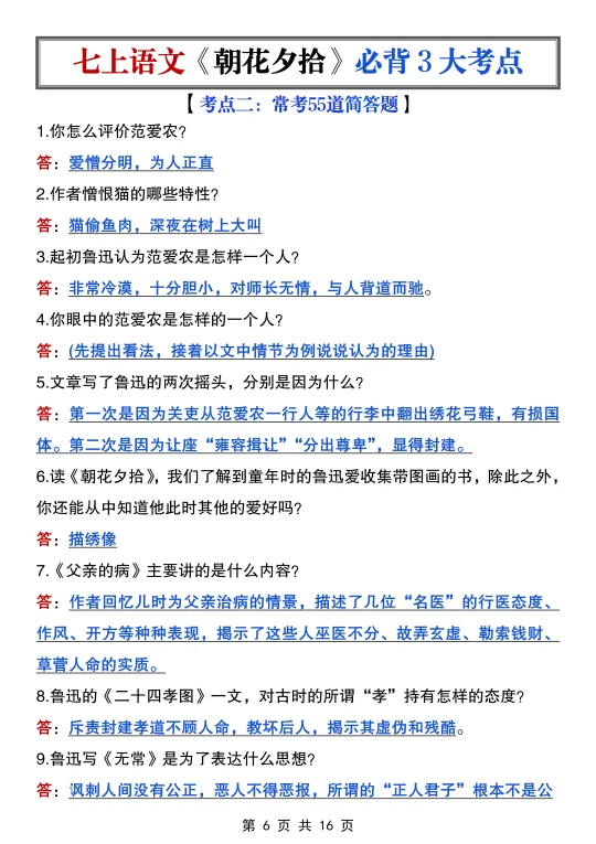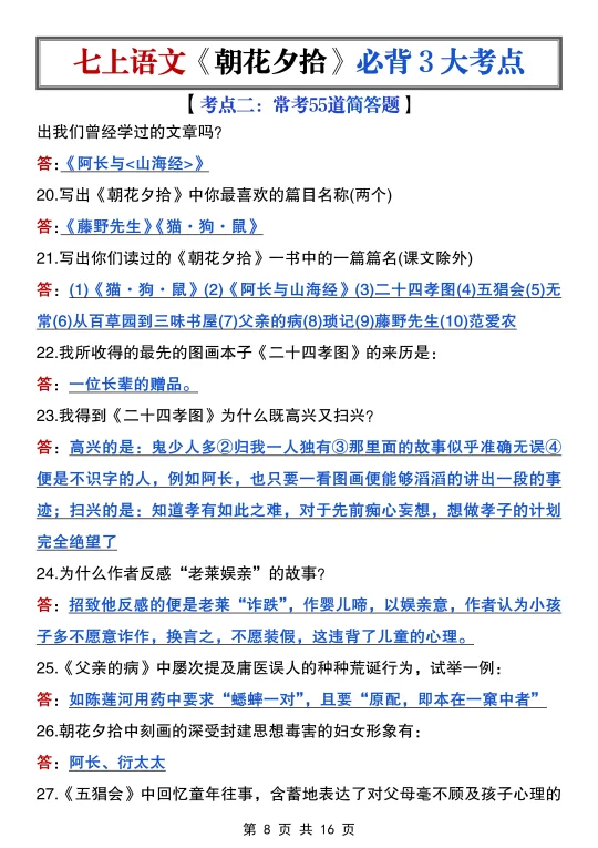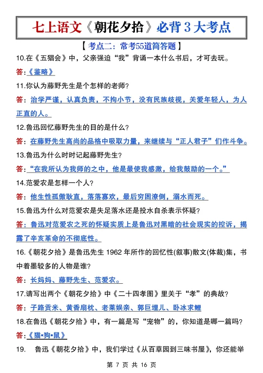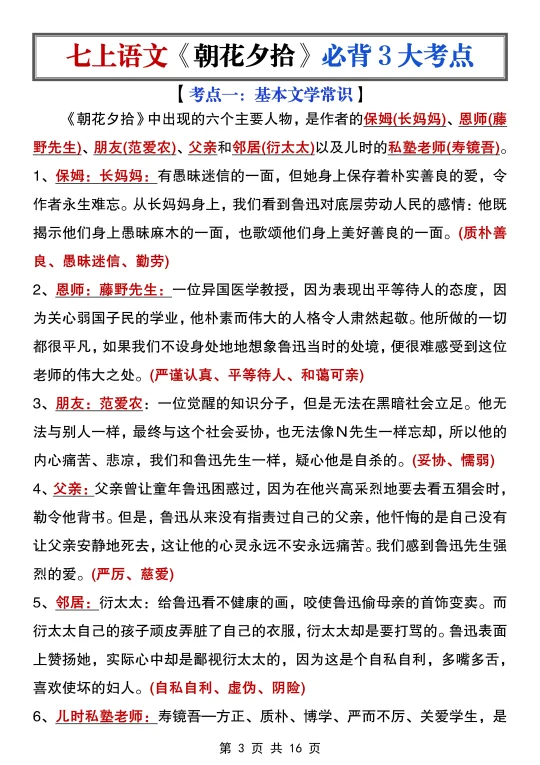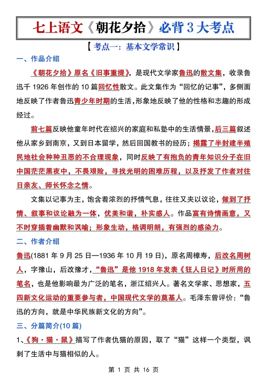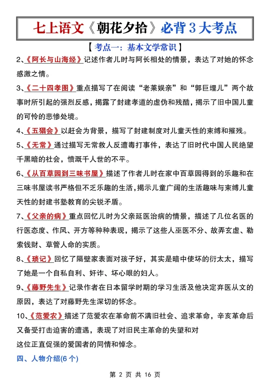 初中语文怎么学 初中学习笔记 朝花夕拾 准初一 七年级上册 名著阅读 小升初 六升七 初一语文 七年级语文