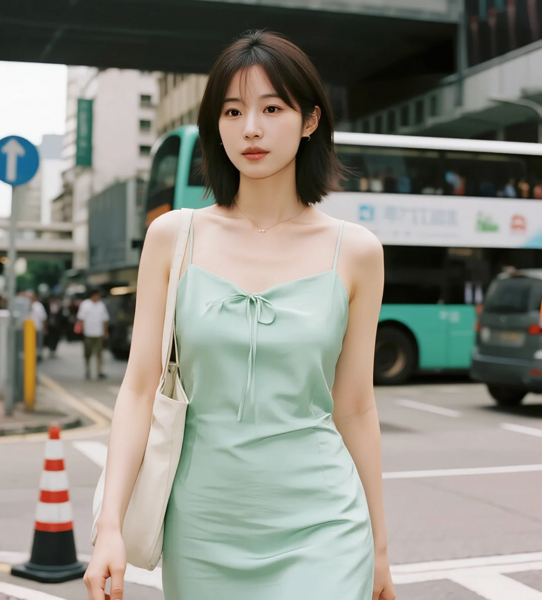 巴士站旁的片刻宁静:都市快节奏中的温柔一瞥