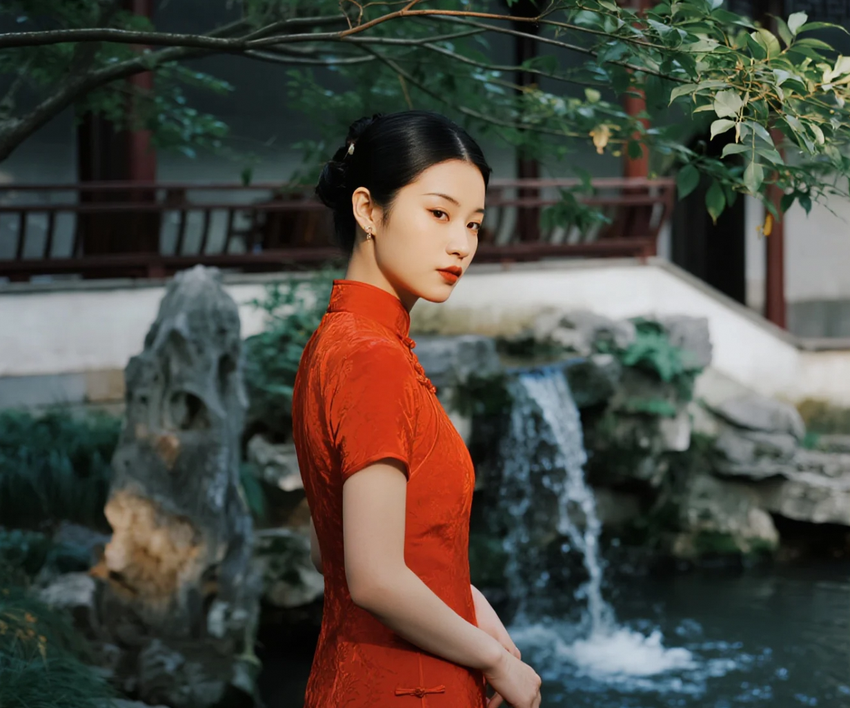 青砖灰瓦间的东方神韵:旗袍女子的庭院时光