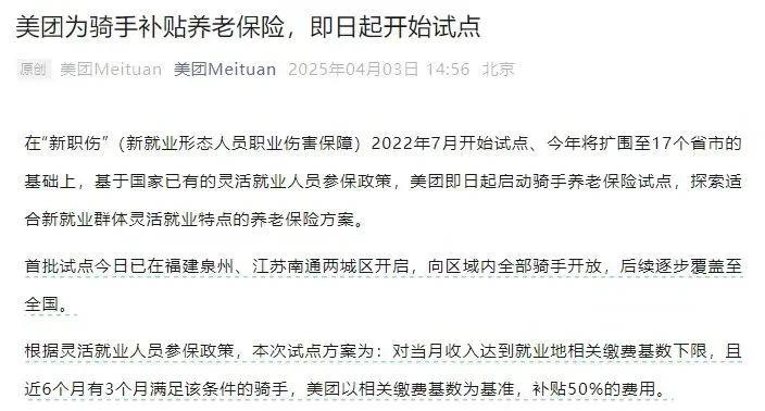 9月开始全员强制社保?背后真相事关所有人 倒计时20来天,社保新规就要落地了!这两天呢,各种小道消息也是满天飞,很多人焦虑的不行。 但今天我要告诉你,这事儿阿跟大家想的可能真不一样,尤其是那些灵活就业的网友们,你们的社保难题,其实早就有答案了。 先给大家吃个定心丸,所谓的“9月社保新规”,不是什么新政策,而是最高法对早就存在的社保缴纳规则,一次明确解释。 简单说,就是告诉所有人,不管你跟公司签了多少“自愿放弃社保”的协议,哪怕你拍着胸脯跟老板保证“我不要社保,多给我点现金就行”,这些在法律上通通不算数。员工只要去告,公司就得乖乖补缴,还得罚款,让更多人知道要如何去维护自己的权益。 可能有人会说,既然不是新规,那折腾这一出干嘛? 看看数据就懂了:目前全国存在超2亿的灵活就业者,如外卖骑手、网约车司机、带货主播……这些“打零工”的,很多连最基本的医保、养老都没有,如果来个大病,那就是全家被拖垮。 但是呢,这些灵活就业者流动性大,传统社保很难覆盖,还有一些人自不想交社保,这是两大阻力。国家也考虑到这些,提出要探寻新就业形态劳动者权益保障“最优解”,重点解决新就业形态劳动者的参保难题。 所以这次的社保规则强调也很明显:低门槛、广覆盖。 而说到社保难覆盖的点,骑手这个群体就很有代表性。骑手的人口流动性很大,还有人是全职、有人是兼职,要做到全覆盖,就必须做到降低门槛和灵活。 现在有外卖平台提出给骑手买社保,例如京东就提出“给全职骑手交社保”。但是拆解它的方案会发现,其实有不少局限:首先是邀请签约,其次必须全职签劳动合同、接受固定排班。 可是有人送外卖,难道一辈子都送外卖吗?这就把占比更高的骑手兼职群体排除在外。再者到目前公布数量也才10多万骑手受益,覆盖规模有限,不太适合骑手灵活就业的特性。 要说给更多骑手保障,我个人觉得美团的做法很适合这群灵活就业者。美团早在2022年7月开始,就在人社部门指导下,出资14亿元为多个省市骑手缴纳工伤险,且同线探索适合的养老保险方案。 很典型的,美团规定只要骑手当月收入达标,半年内有3个月满足条件,就能自动获得一半的保费补贴。 更关键的是,骑手可以自己选在户籍地或工作地参保,哪怕农忙返乡歇几个月,社保也不会断,正好满足了平台81.6%外来务工骑手、70%跨城市流动的特点,能够覆盖百万骑手。这也跟国家现在强调的“低门槛、广覆盖”不谋而合。 只不过有趣的是,看时间明明是美团先给骑手交上了社保,但是被京东半路抢先全网宣传,这才抢了美团的风头。 当然,目前骑手这边在探索方案,但是网约司机、主播、服务员等更多的灵活就业的群体还面临着老无所依、病无所养的情况,这点还需要继续完善,需要国家、平台和劳动者共同探讨。 我也知道,有人会觉得社保是负担,每个月工资被扣掉一大块心疼得不行。但大家有没有想过,等老了干不动了,没有养老金靠什么生活?生场大病没有医保,几万块的医药费从哪来?社保从来不是为别人交的,是国家给你兜底的最后一道防线,是让每个劳动者都能在奔波之余,心里有份踏实的依靠。你觉得呢?