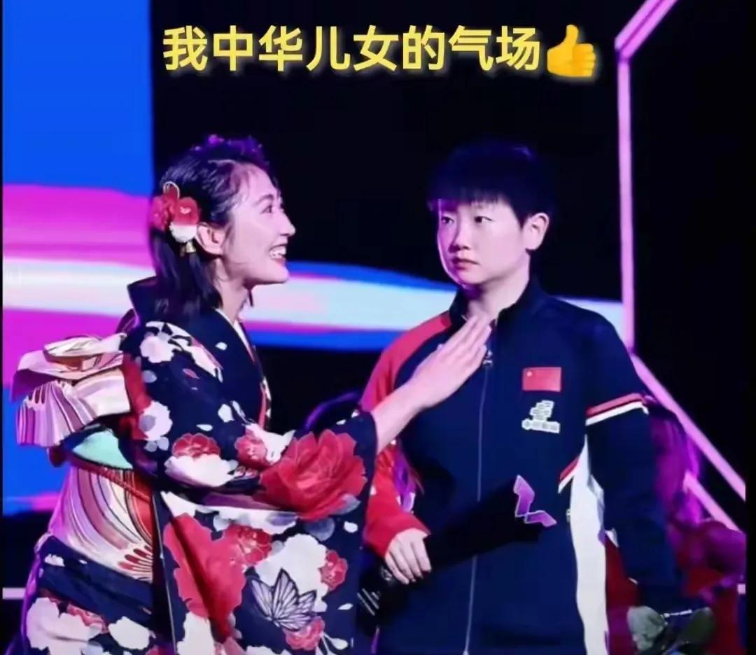 好喜欢莎莎这里的表情。 横滨冠军赛,颁奖仪式上。 小日子的穿着和 服的引导员跟莎莎一起,瞧这引导员笑的,而莎莎看她的眼神儿,一身正气凛然的样子,太招人稀罕了。