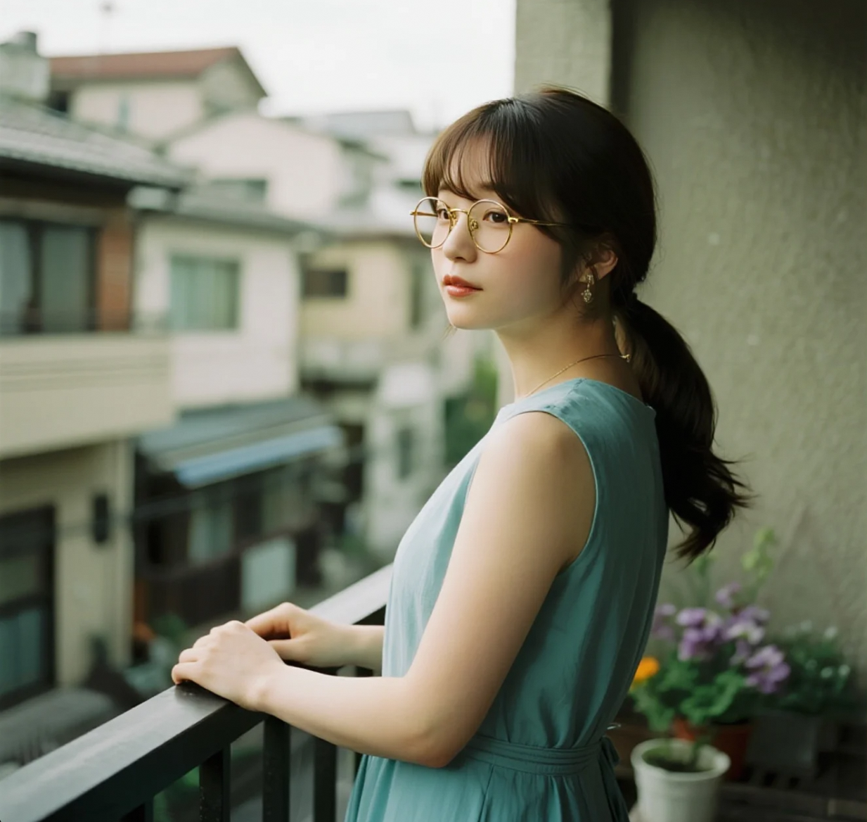 俯瞰城市的温柔视角:清纯美眉阳台写真,纯净感拉满