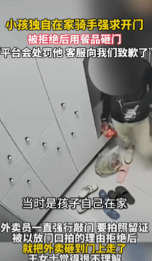 “严惩到底!”天津一外卖员送错餐,遇到独自在家的小朋友,他要求孩子把门打开,要签收拍照,小朋友拒绝,让外卖员把餐放在门口拍照,不料,外卖员竟然把餐砸在了门上,网友:脾气太暴躁的人,真的不适合送外卖! 据顶端新闻8月13日消息,孩子家长夜间出门后,就让孩子自己在家玩,父母离开没多长时间,孩子就听到一阵急促的敲门声,他走到门口,询问对方的身份。 得知是外卖员后,孩子很疑惑,他没有点外卖,父母要是点的话,肯定会提前给他说,可父母没提前告知他,听着外卖员的催促声,孩子害怕极了。 于是他让对方把餐放到门口,这样至少能保证自己的人身安全,等父母回来后,再把餐拿过来,万一真是坏人,他弱小的身躯可真招架不住。 可外卖员不依不饶起来,执意让孩子把门打开,再次被拒绝后,外卖员情绪激动起来,他要让孩子手拿着餐,然后进行拍照,可男孩压根不知道这种规则是哪里来的。 真想拍照,在门口拍不都是一样的,而且出了电梯就是他家门口,又没别人会来,眼见男孩态度坚决,外卖员不再坚持,就在他转身离开时,狠狠把饭扔在门上。 然后不管不顾上了电梯,独留孩子消化这场遭遇,父母回来后,孩子把事情经过告诉给了家人,妈妈很生气的联系到了外卖平台,这名外卖员必须得受到应有的惩处,平台也保证会处罚。 对于这件事情,大家有什么看法? 信息来源:顶端新闻 2025年8月13日