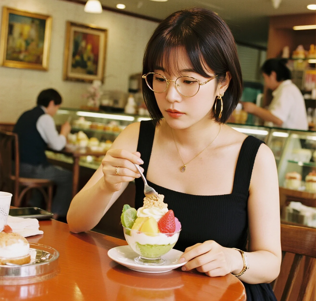 一口甜蜜,一脸幸福:甜美美女品鉴精致甜点的可爱瞬间