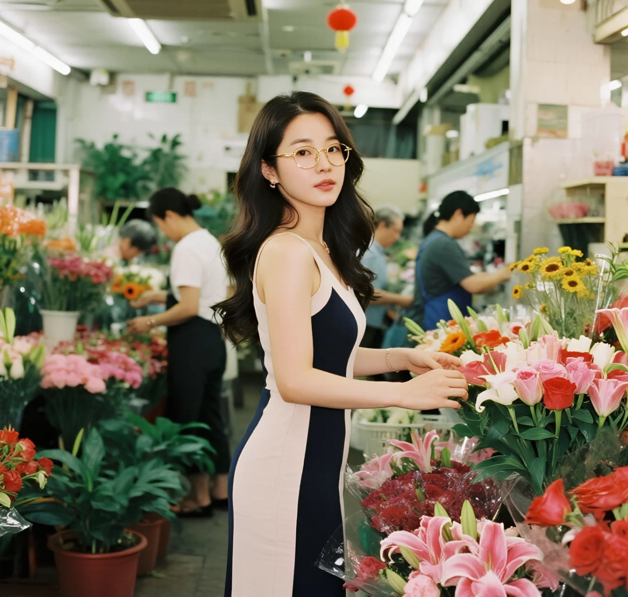 捧花而来的她:清纯美眉提着花束离开的背影,温柔了时光