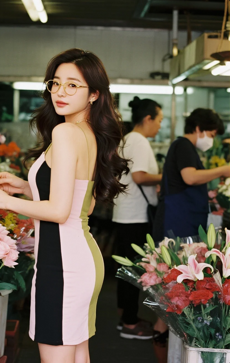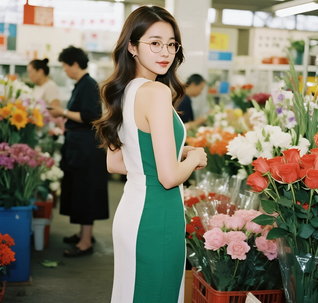 她侧身挑选的样子,比花还美:清纯美眉花店写真