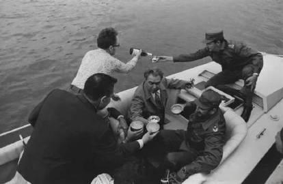 大碗喝酒,大口吃肉,勃列日涅夫和卡斯特罗兄弟在公园游湖,一起大碗喝酒。这是在1974年2月1日,勃列日涅夫和卡斯特罗兄弟在哈瓦那的小游船上一起喝酒。 酒神勃列日涅夫酒量惊人,在当时的苏联政坛,没有人敢和这位苏联的老大勃列日涅夫对饮,酒量唯一能和他匹敌的是后来只做了一年最高领导人就死于肝硬化的契尔年科。 勃列日涅夫是乌克兰人,15岁进入工厂做锅炉工,虽然后来读过中专和农机学校,但是他并不喜欢读书,每次发言都要照着秘书写的稿子读,有时候还会串行。相比读书,勃列日涅夫更喜欢打猎和社交,他把这两个爱好保持了一辈子。不过这并没有阻止勃列日涅夫升迁。